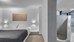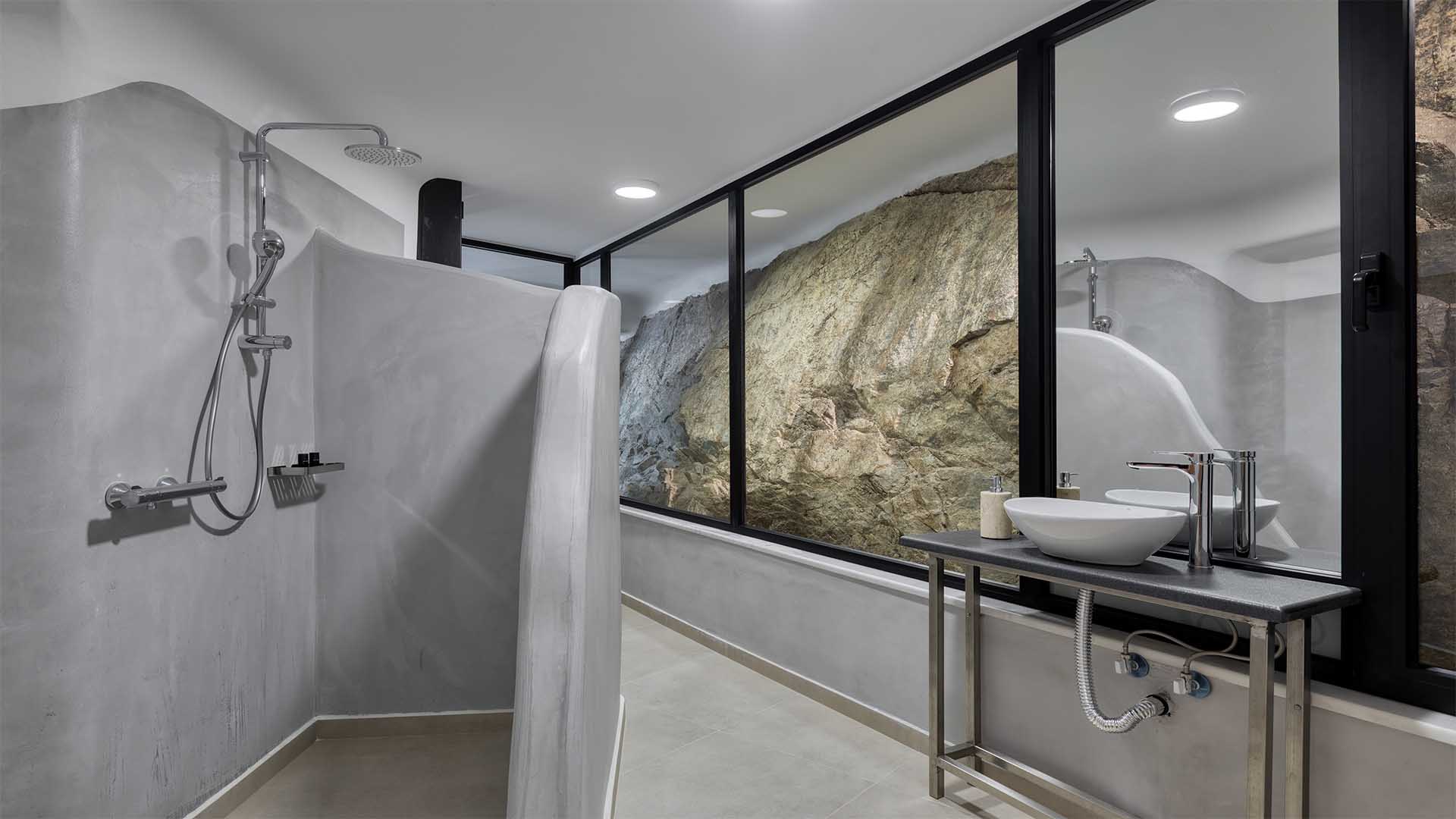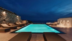 Clear blue sky and a view as far as the eye can travel, elegant and spacious lounging areas will surround you along with the villa’s Cycladic architecture. The outdoor area simply fulfills every individual need in an oasis-like environment from every aspect. The deck is almost floating above the sea and equipped with sun loungers, is perfect for leisure days soaking up the sun. Your only task is to relax by the amazing pool and allow your senses to free themselves away from indiscreet eyes.