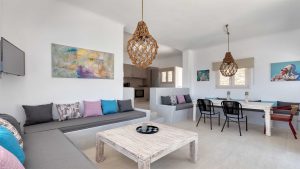 Live out your Mykonian dream in this newly constructed villa complex with an extraordinary and minimal decoration. Away from the noise and simultaneously close to everything. Located at Fanari hill. This Villa offers you one of the most amazing view of the south-east Aegean and other islands like Rineia – Delos – Siros – Paros.