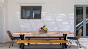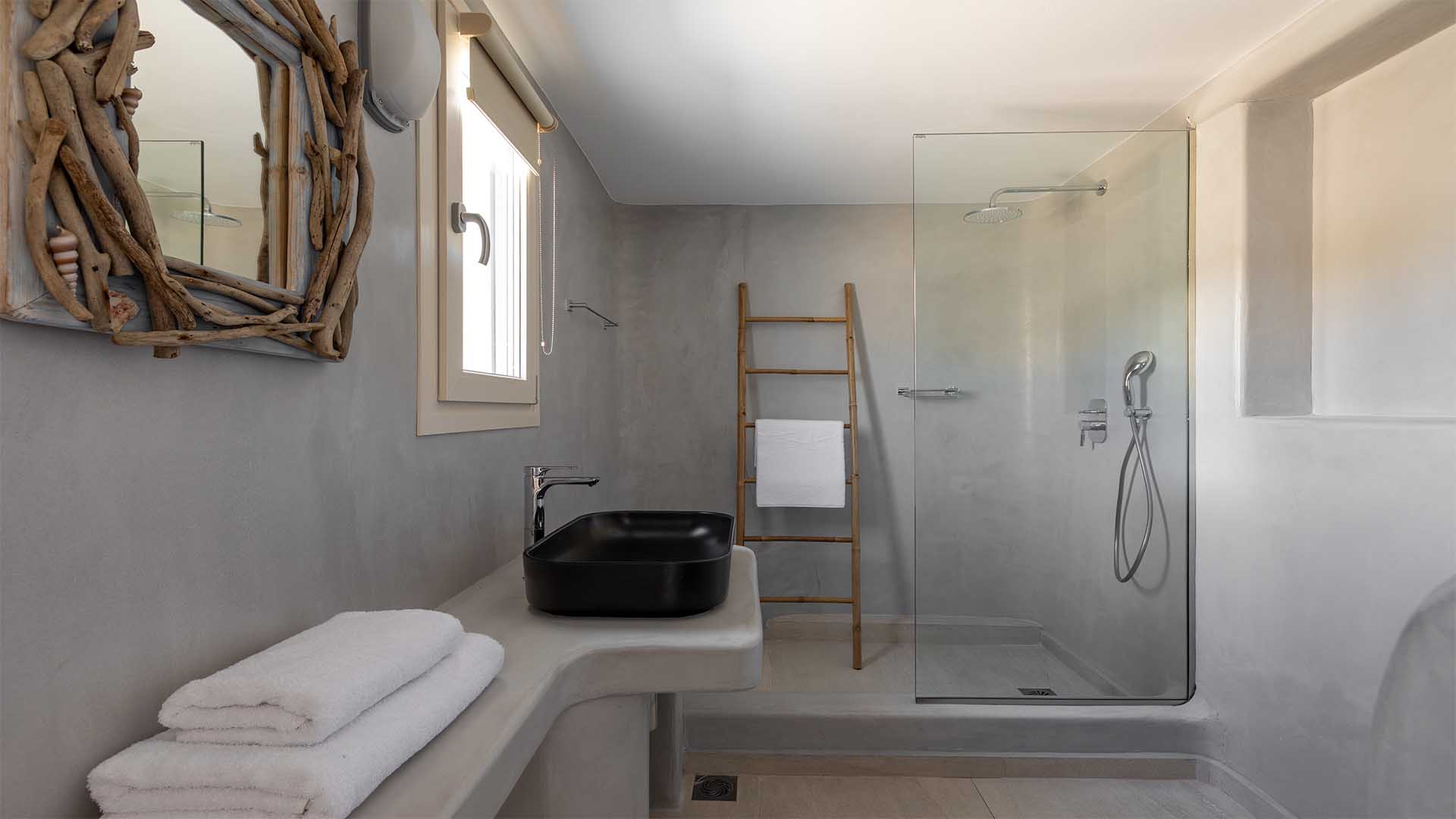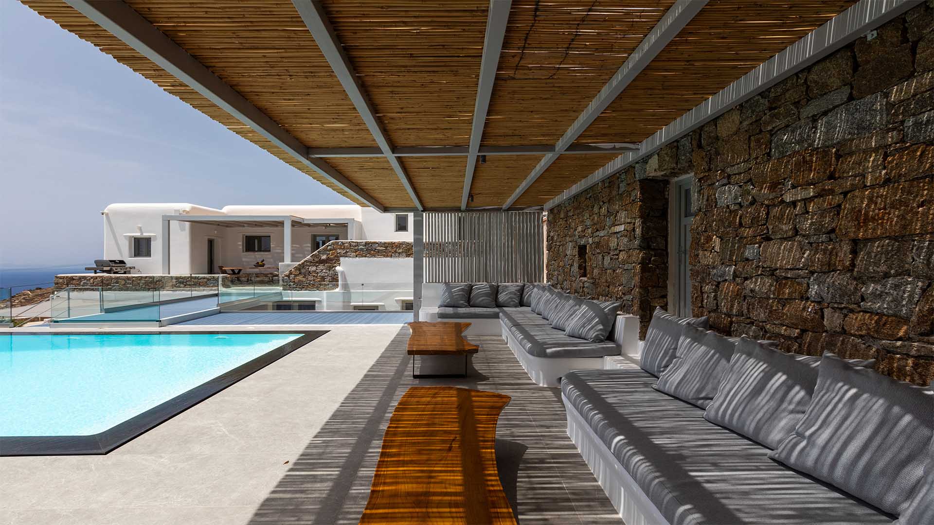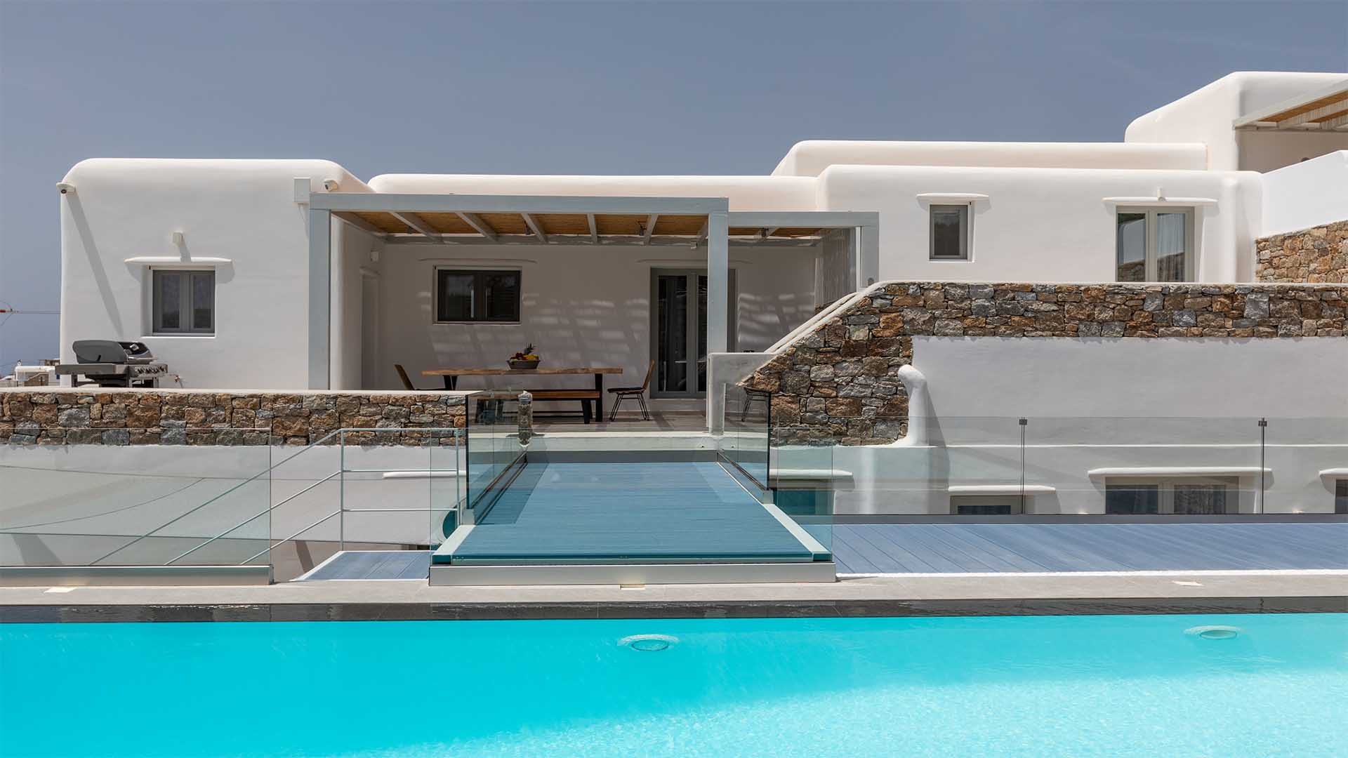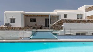 Clear blue sky and a view as far as the eye can travel, elegant and spacious lounging areas will surround you along with the villa’s Cycladic architecture. The outdoor area simply fulfills every individual need in an oasis-like environment from every aspect. The deck is almost floating above the sea and equipped with sun loungers, is perfect for leisure days soaking up the sun. Your only task is to relax by the amazing pool and allow your senses to free themselves away from indiscreet eyes.