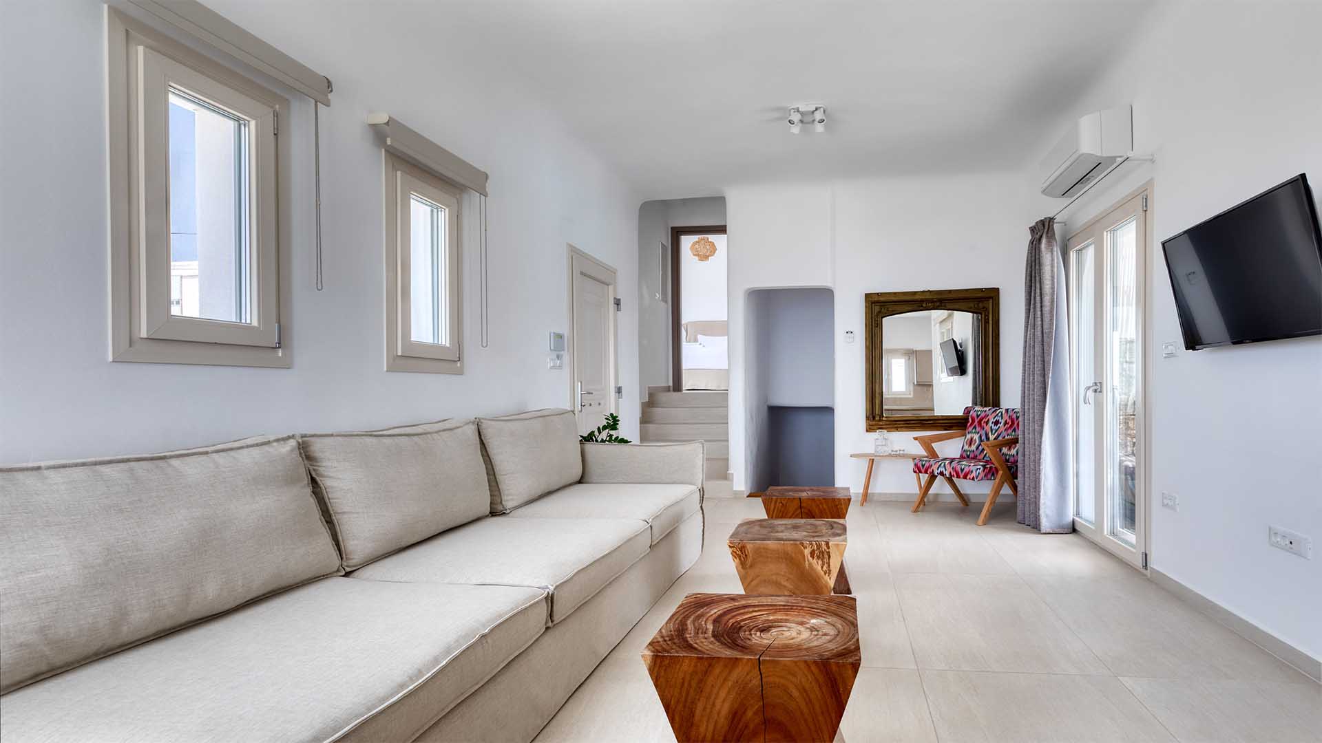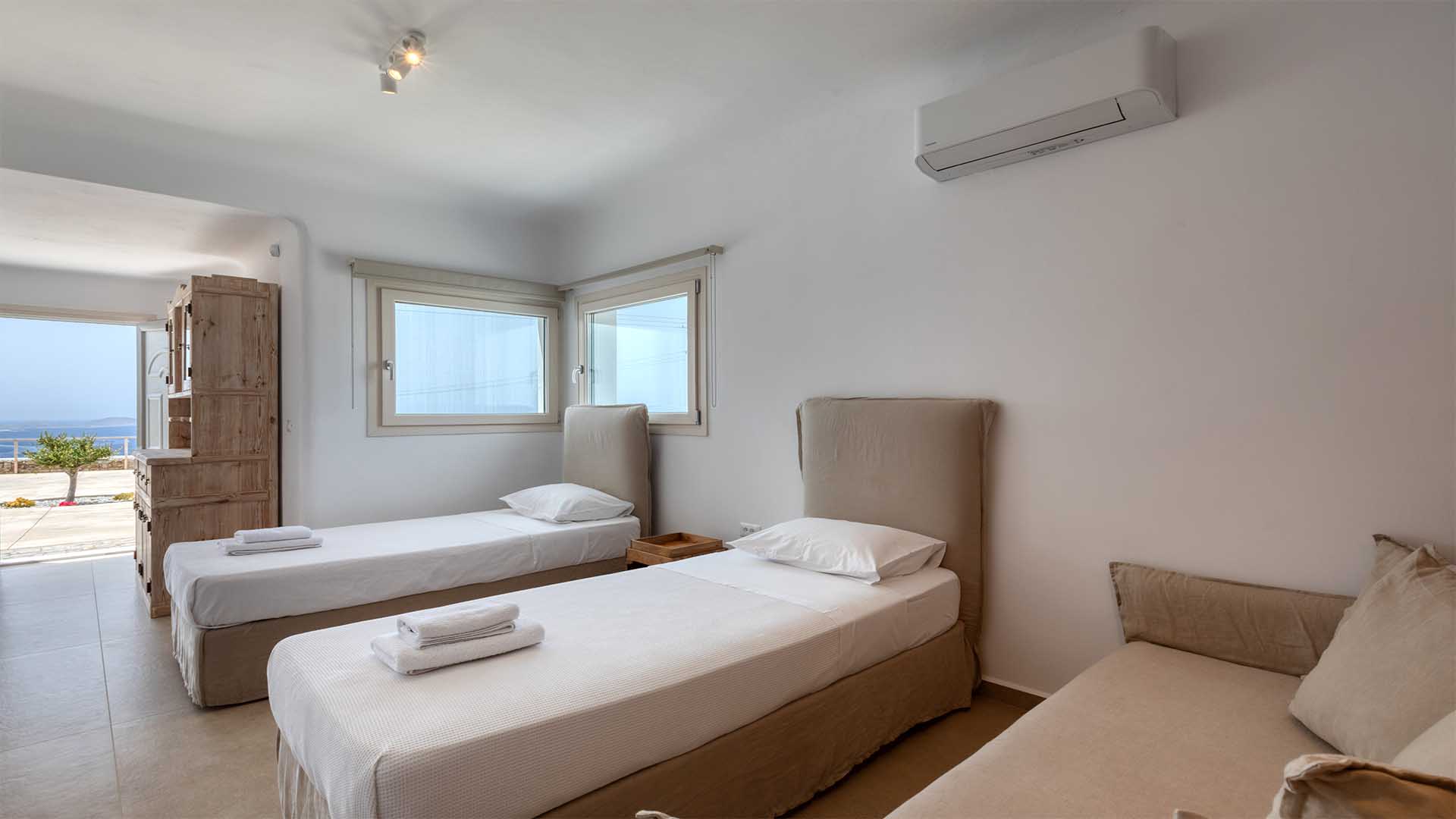 Live out your Mykonian dream in this newly constructed villa complex with an extraordinary and minimal decoration. Away from the noise and simultaneously close to everything. Located at Fanari hill. This Villa offers you one of the most amazing view of the south-east Aegean and other islands like Rineia – Delos – Siros – Paros.