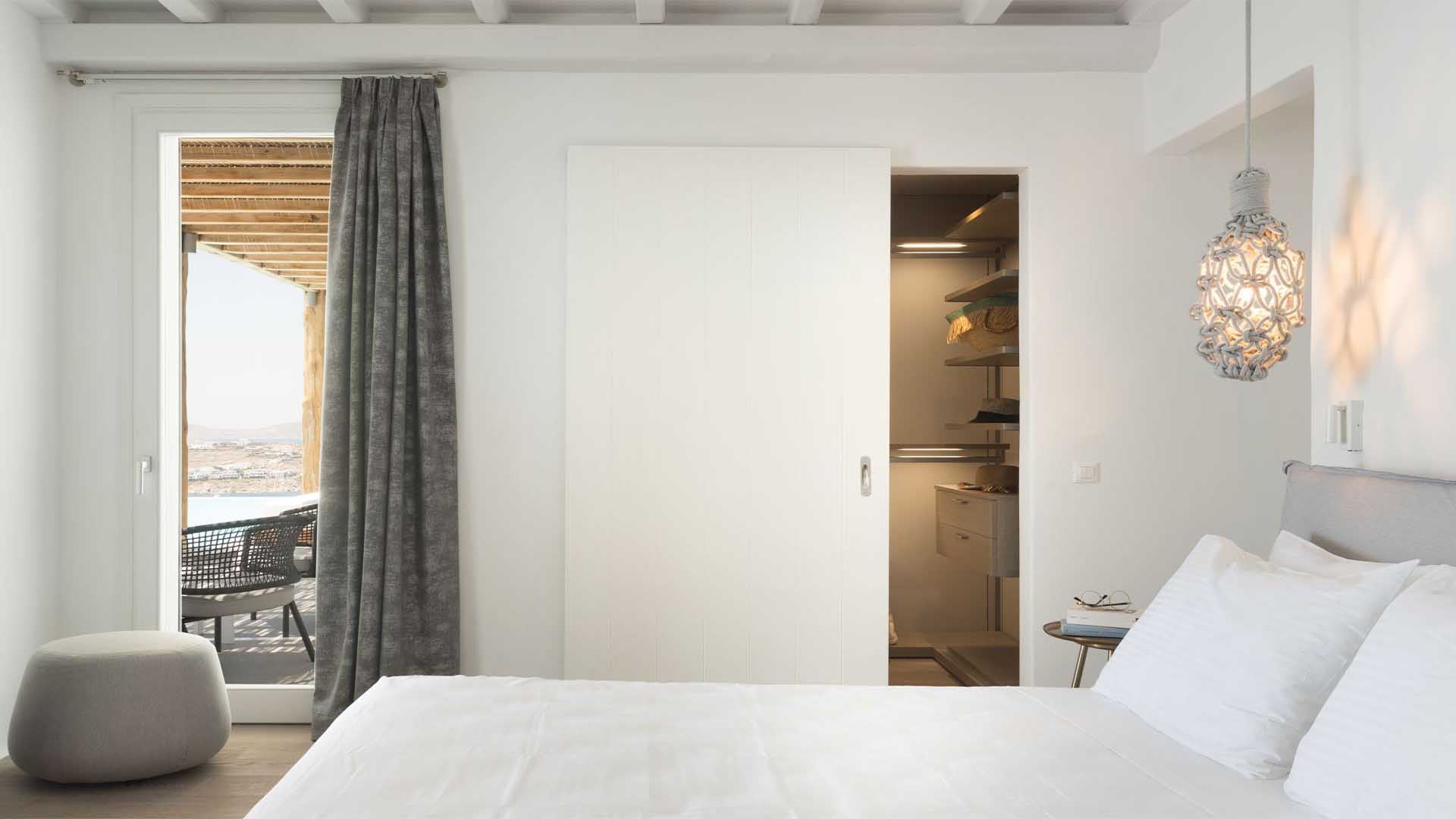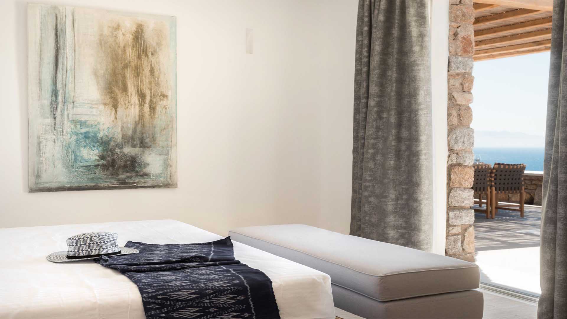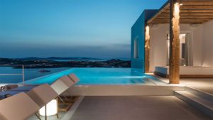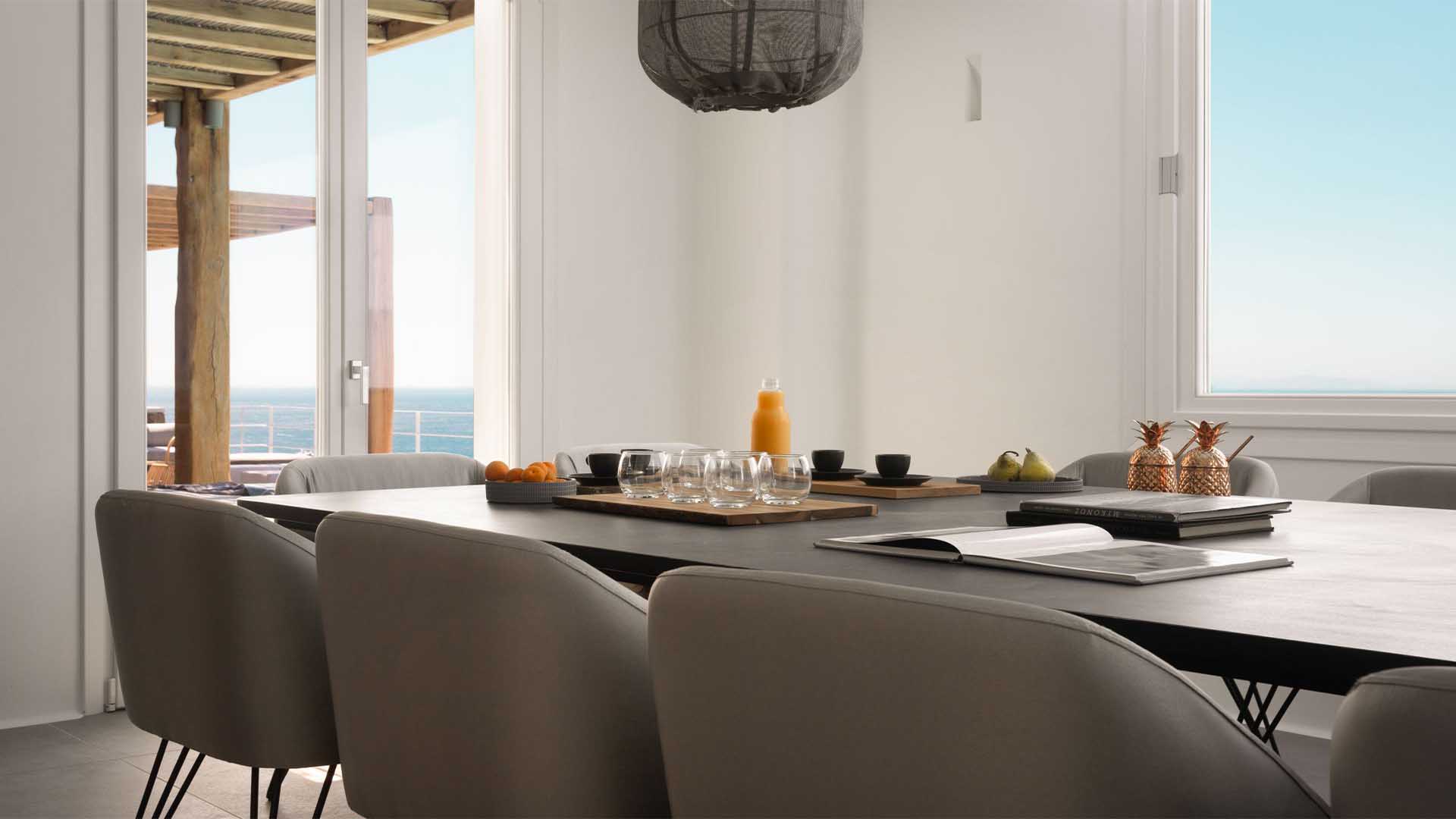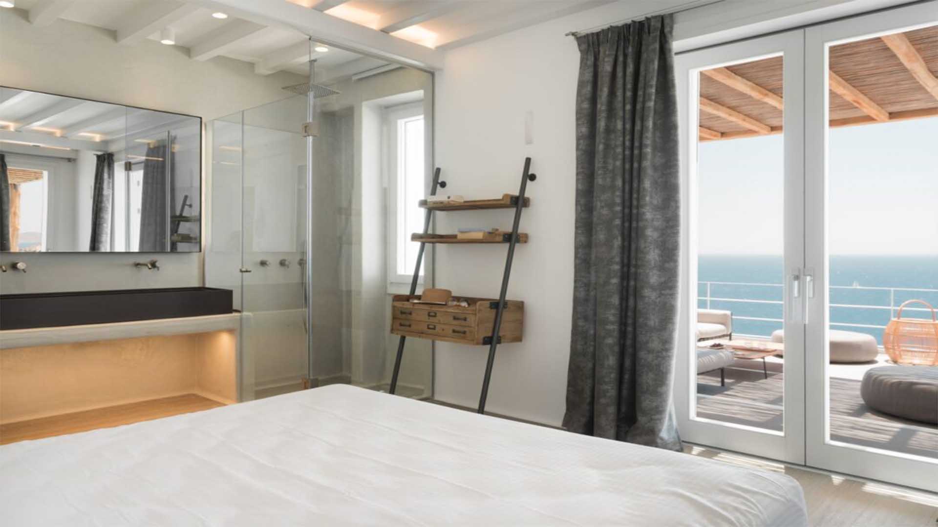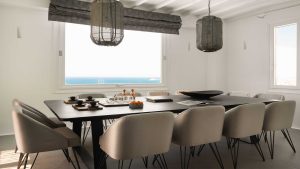 The villa is a real Mykonian Palace with lavish and spacious indoor and outdoor areas, featuring 8 elegant bedrooms ensuite, with high-quality furniture and lighting.