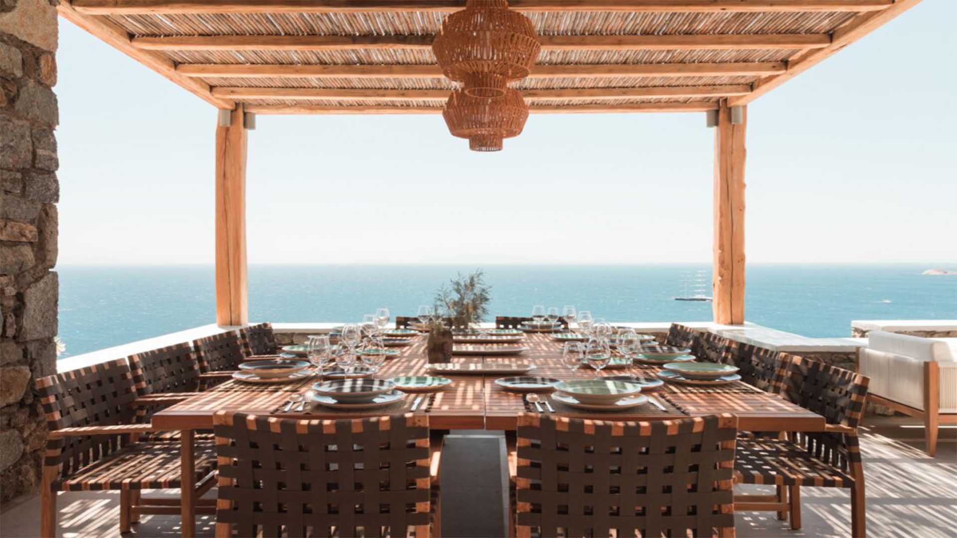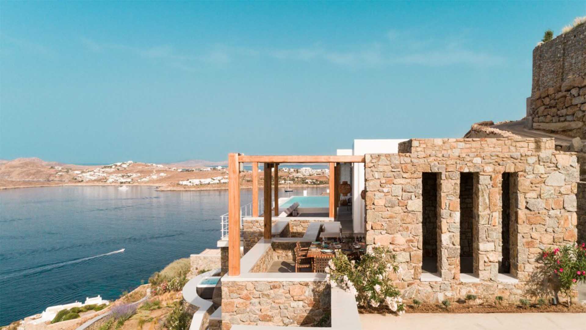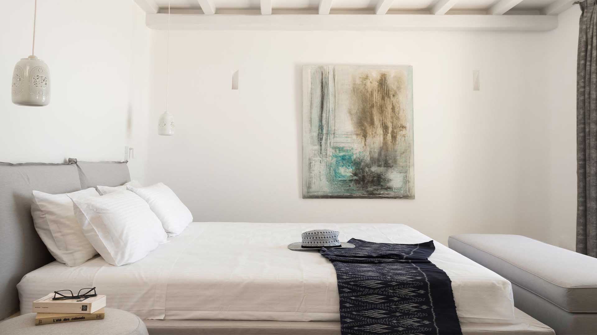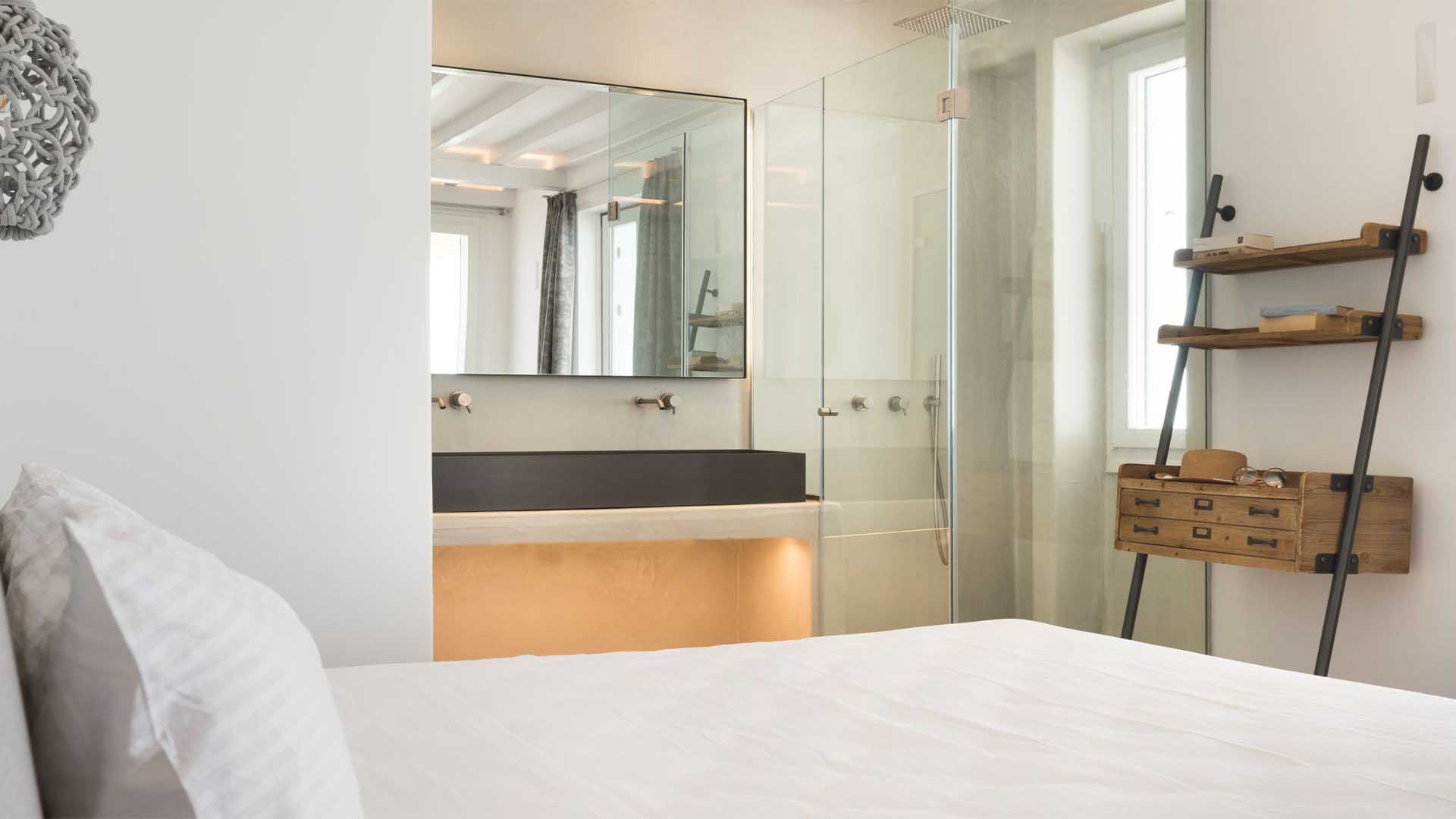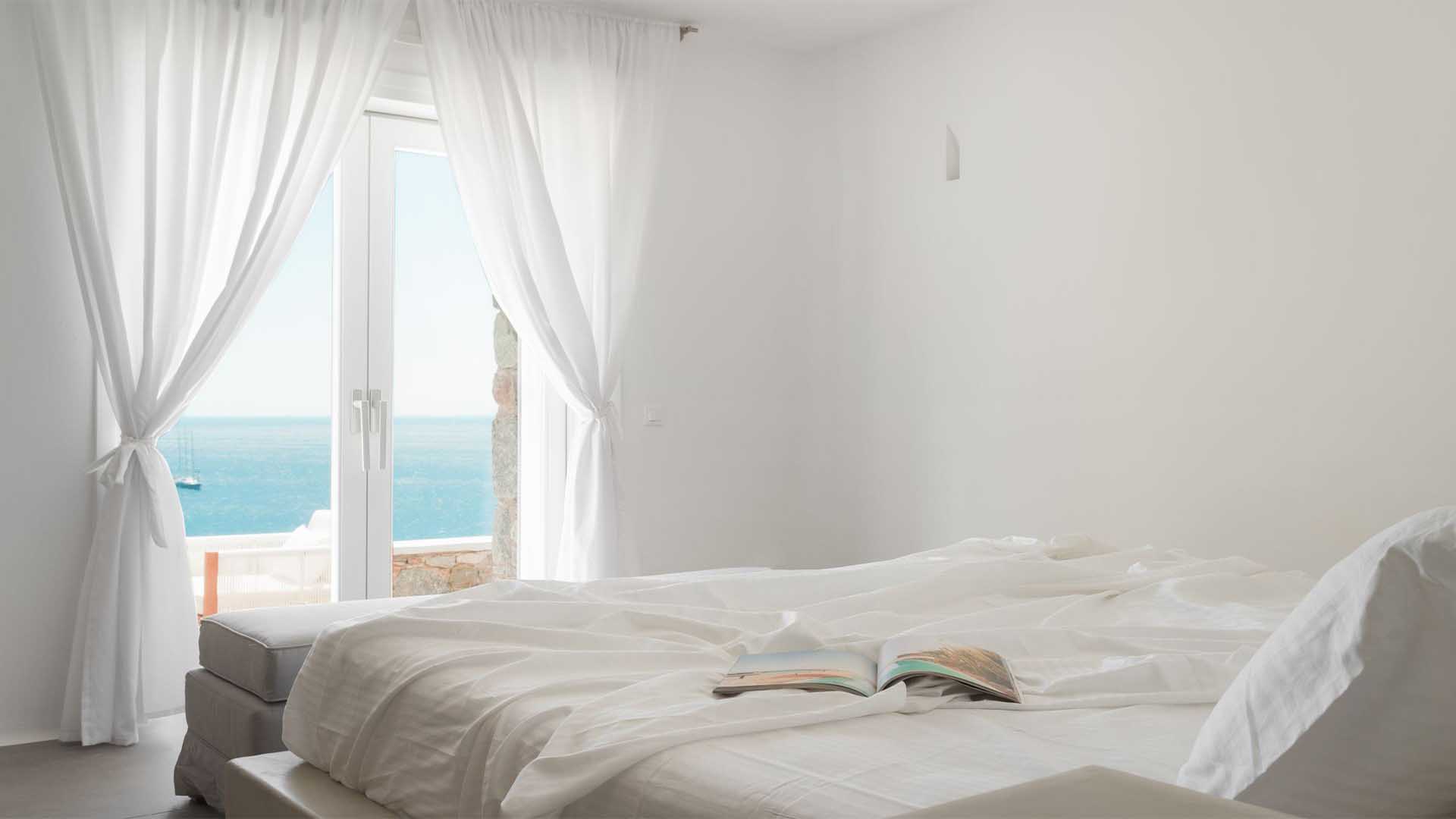 The villa is a real Mykonian Palace with lavish and spacious indoor and outdoor areas, featuring 8 elegant bedrooms ensuite, with high-quality furniture and lighting.