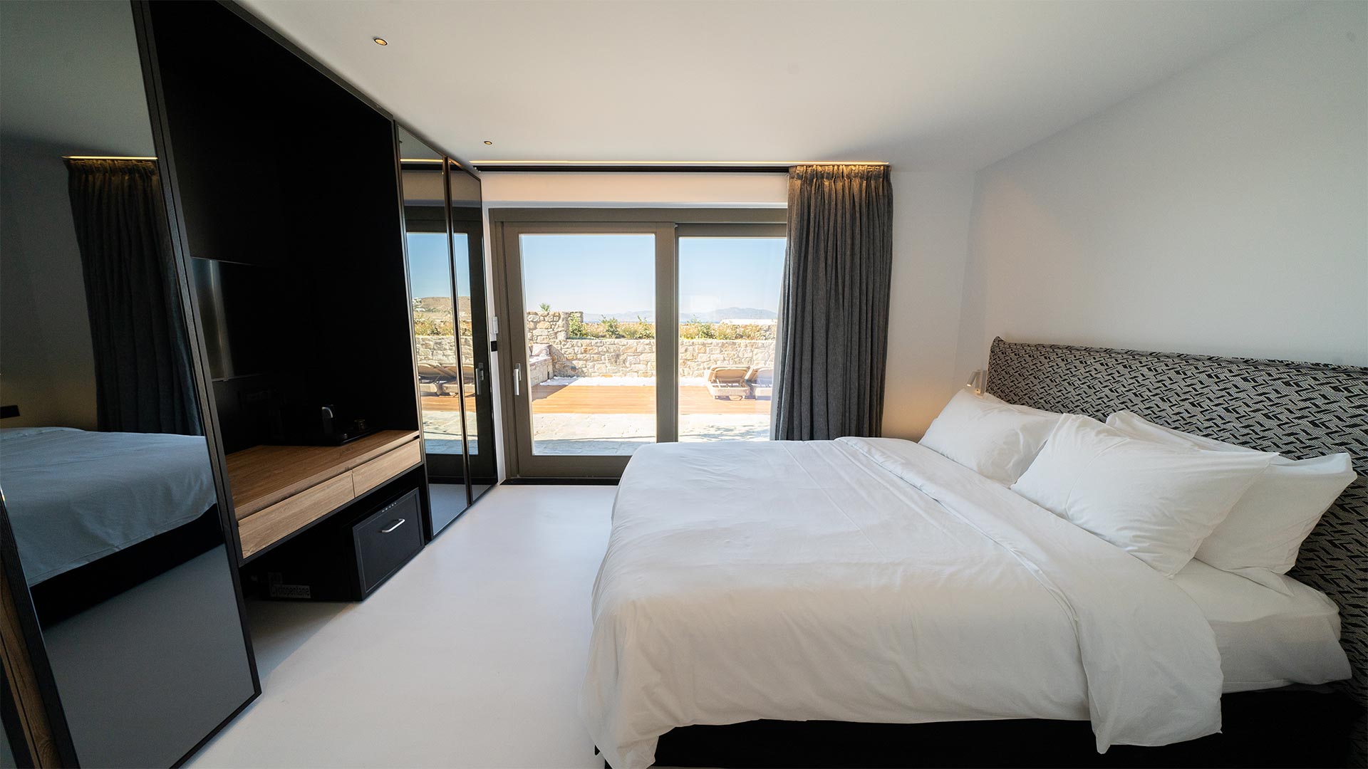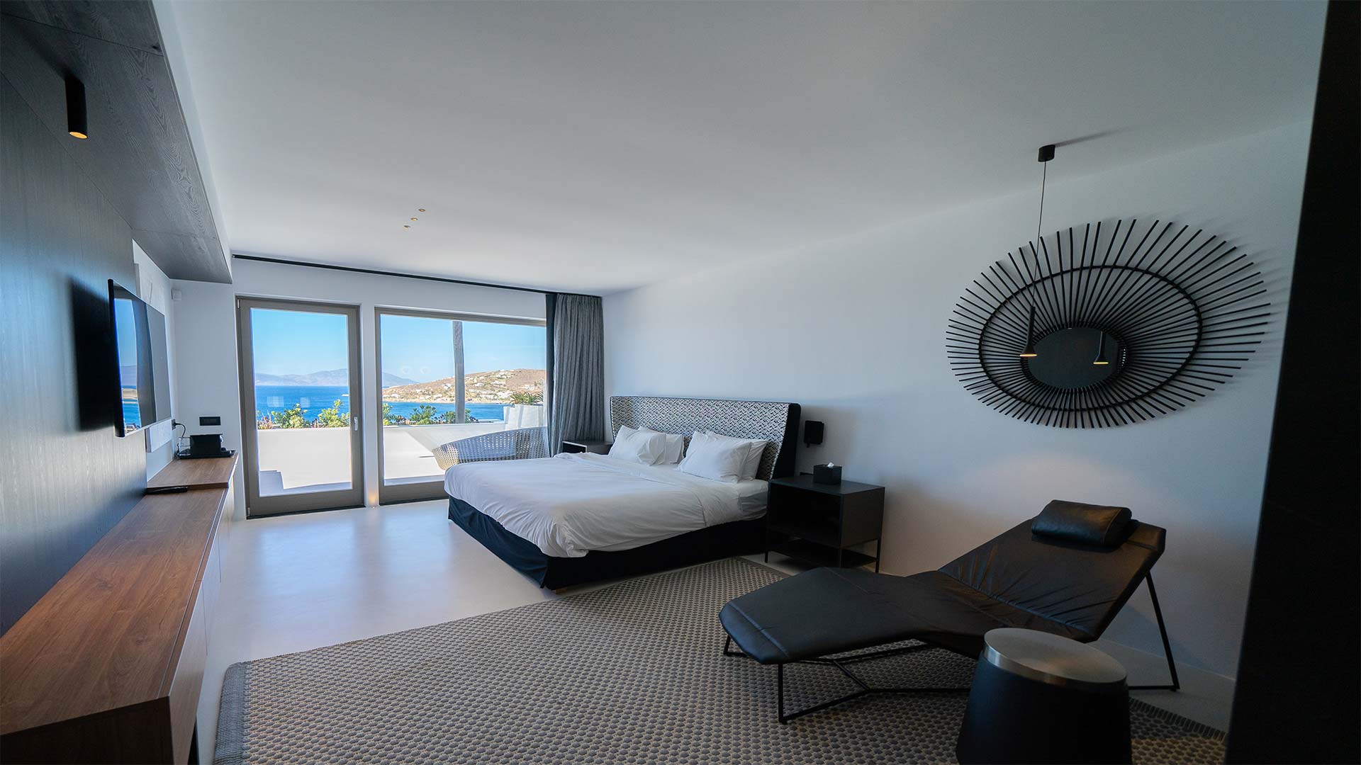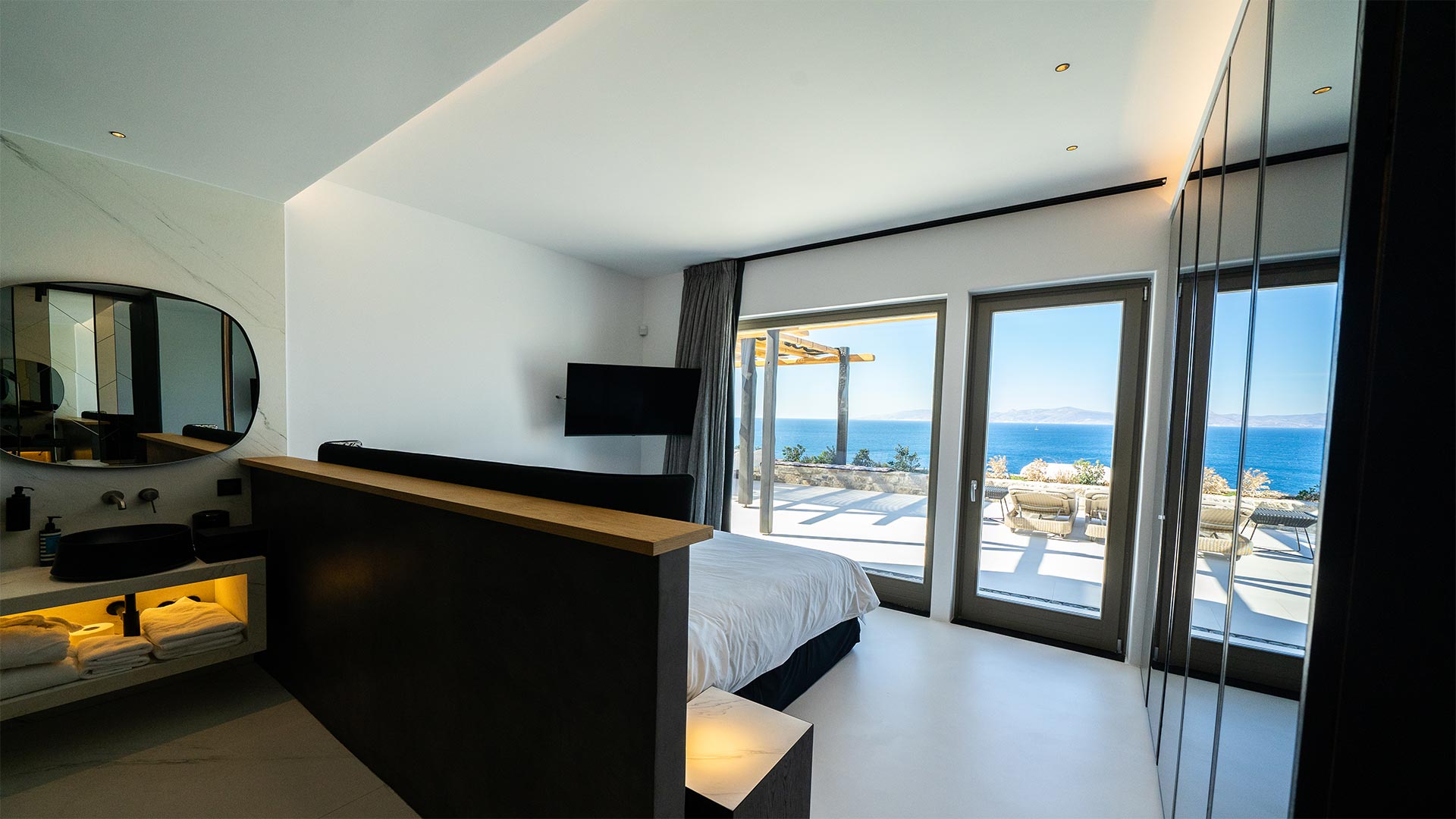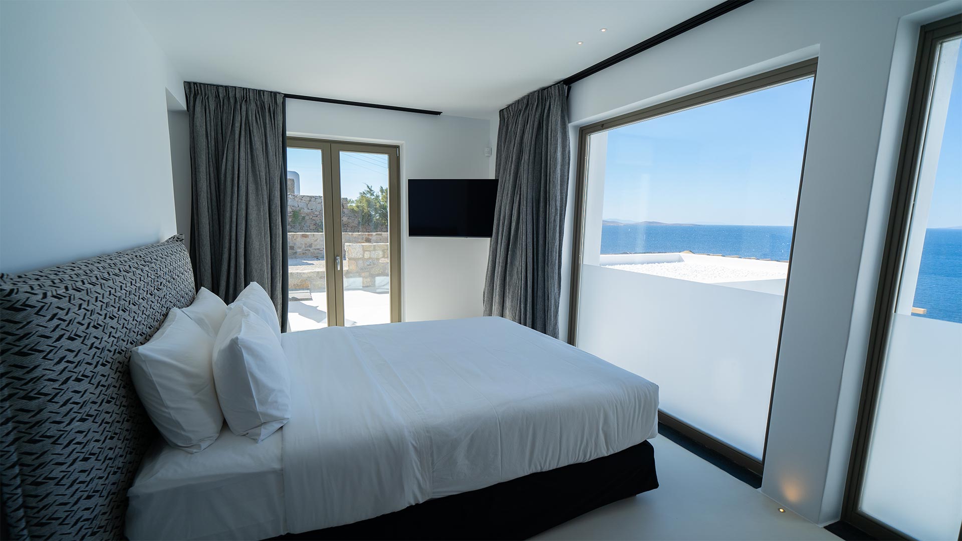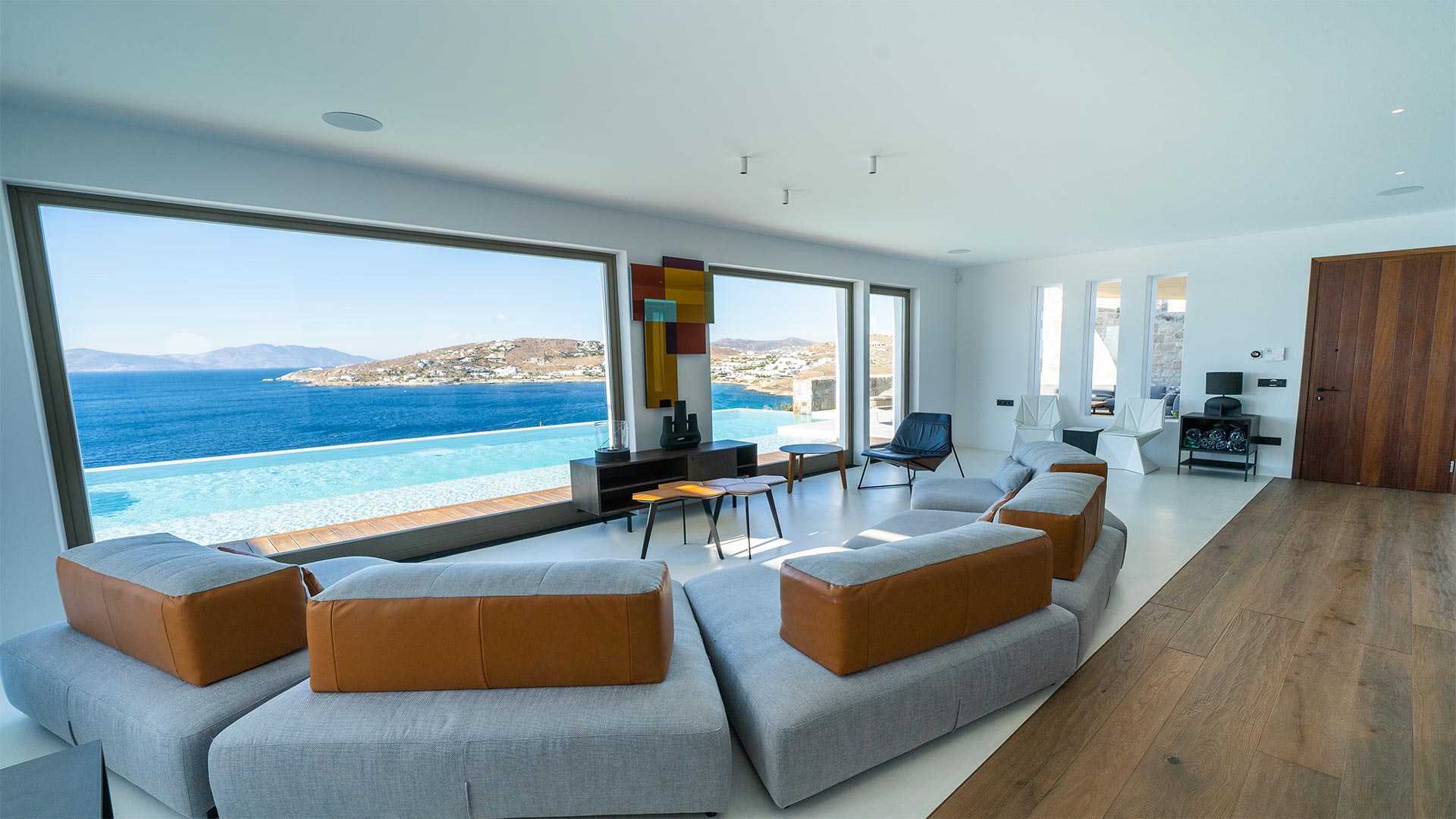 A Mykonian traditional architecture blended with modern features and infrastrusture. The result is a carefully crafted with care Karma Villa;breathes with the environment in a transparent languge of water features, stone,white & deep blue sea, Delos, Siros & the Aegean look so close.