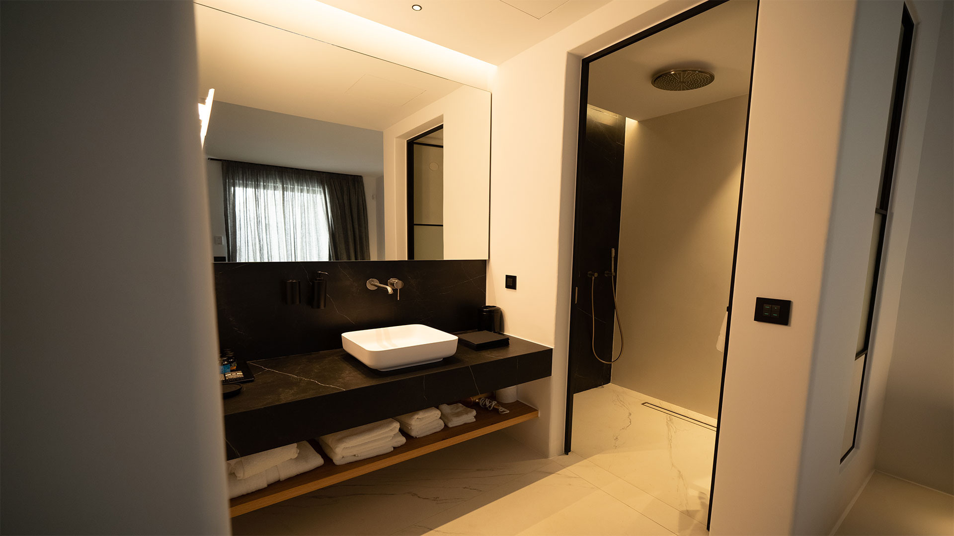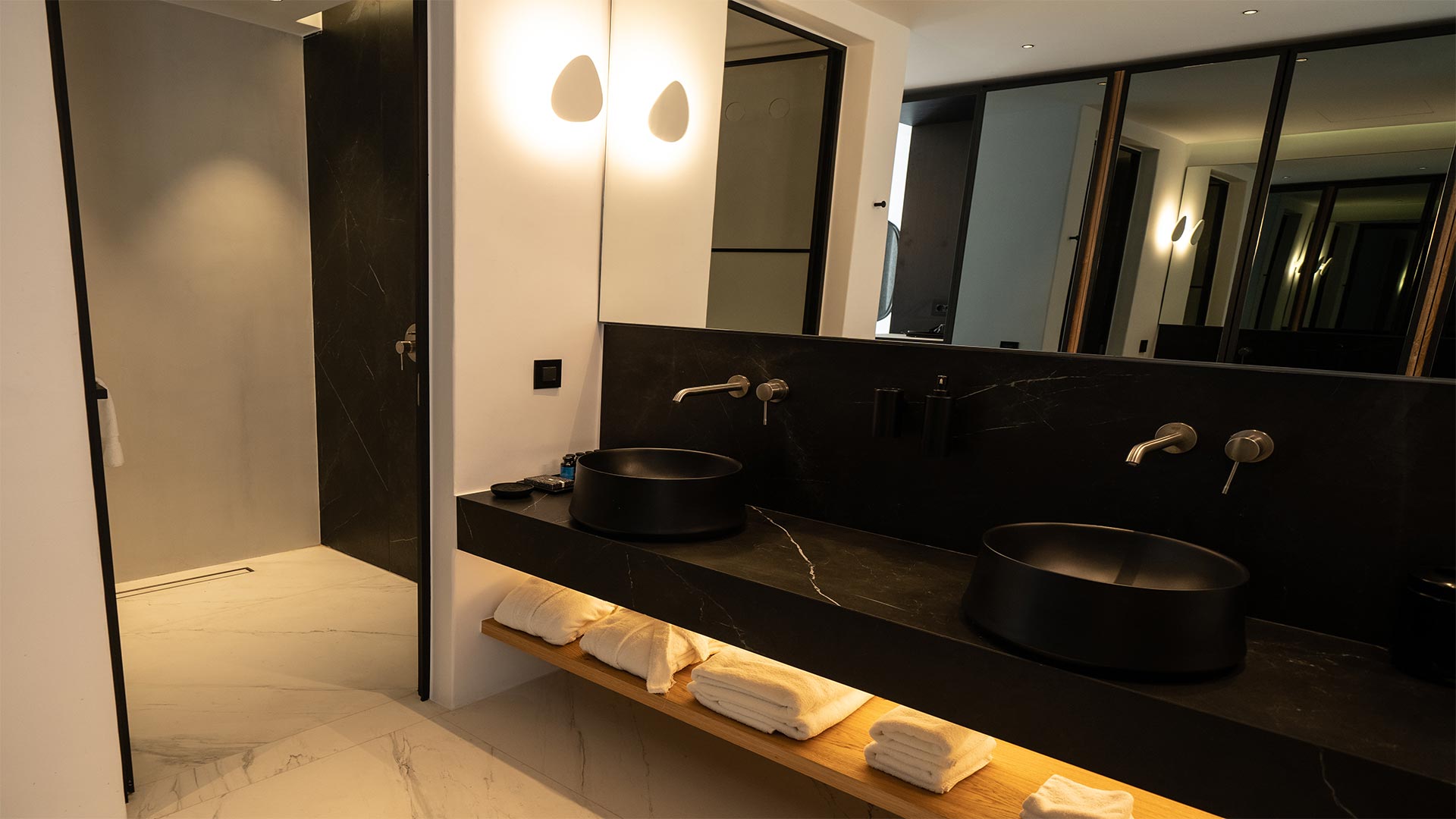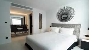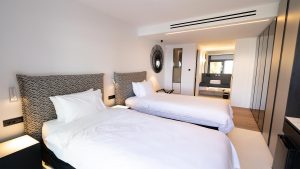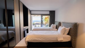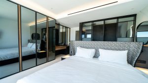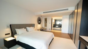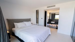 The villa has fully equipped modern style rooms with walk in shower & wardrobe framed with natural wood/mini bars/B&B beds/quality comfort mattresesses & linens/towels/bathroom amenities/hair dryers/slippers/eye covers/ reading lights/VRV cooling/double glazing system/safes/smart TV/Wifi and more.