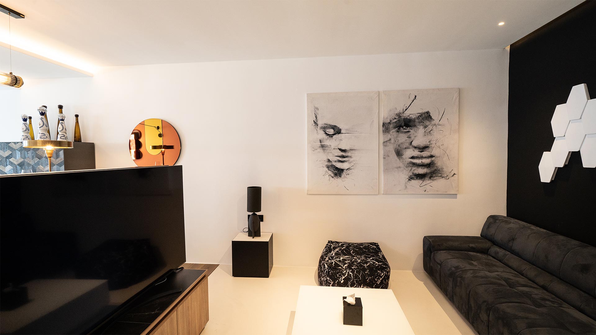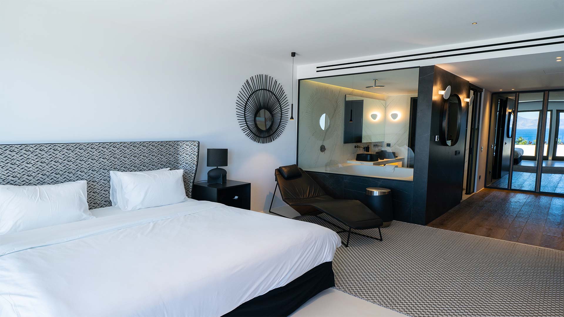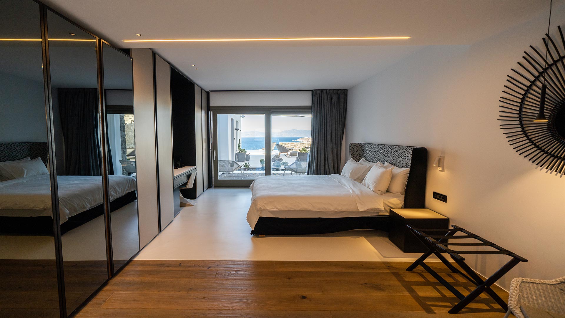 The villa has fully equipped modern style rooms with walk in shower & wardrobe framed with natural wood/mini bars/B&B beds/quality comfort mattresesses & linens/towels/bathroom amenities/hair dryers/slippers/eye covers/ reading lights/VRV cooling/double glazing system/safes/smart TV/Wifi and more.