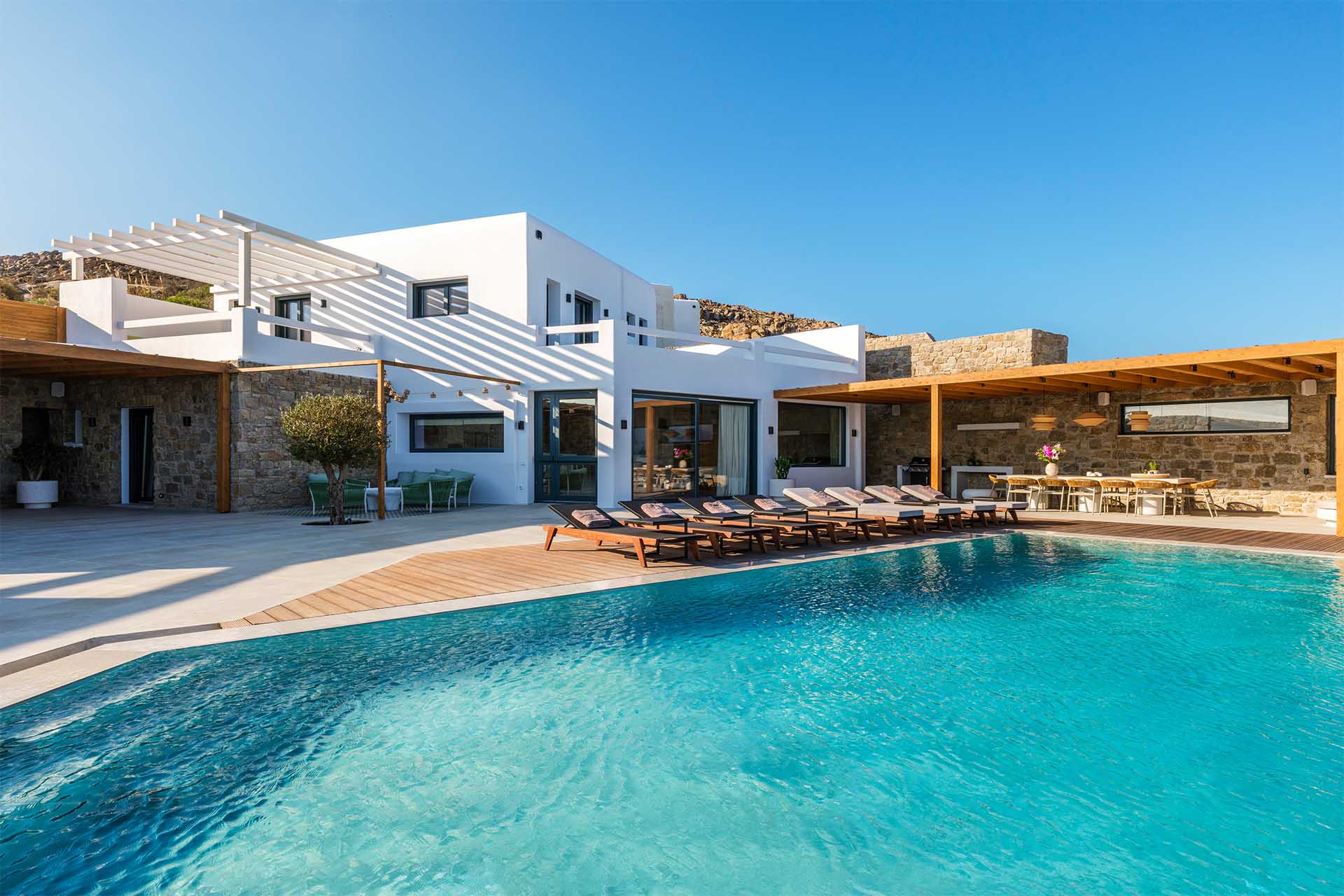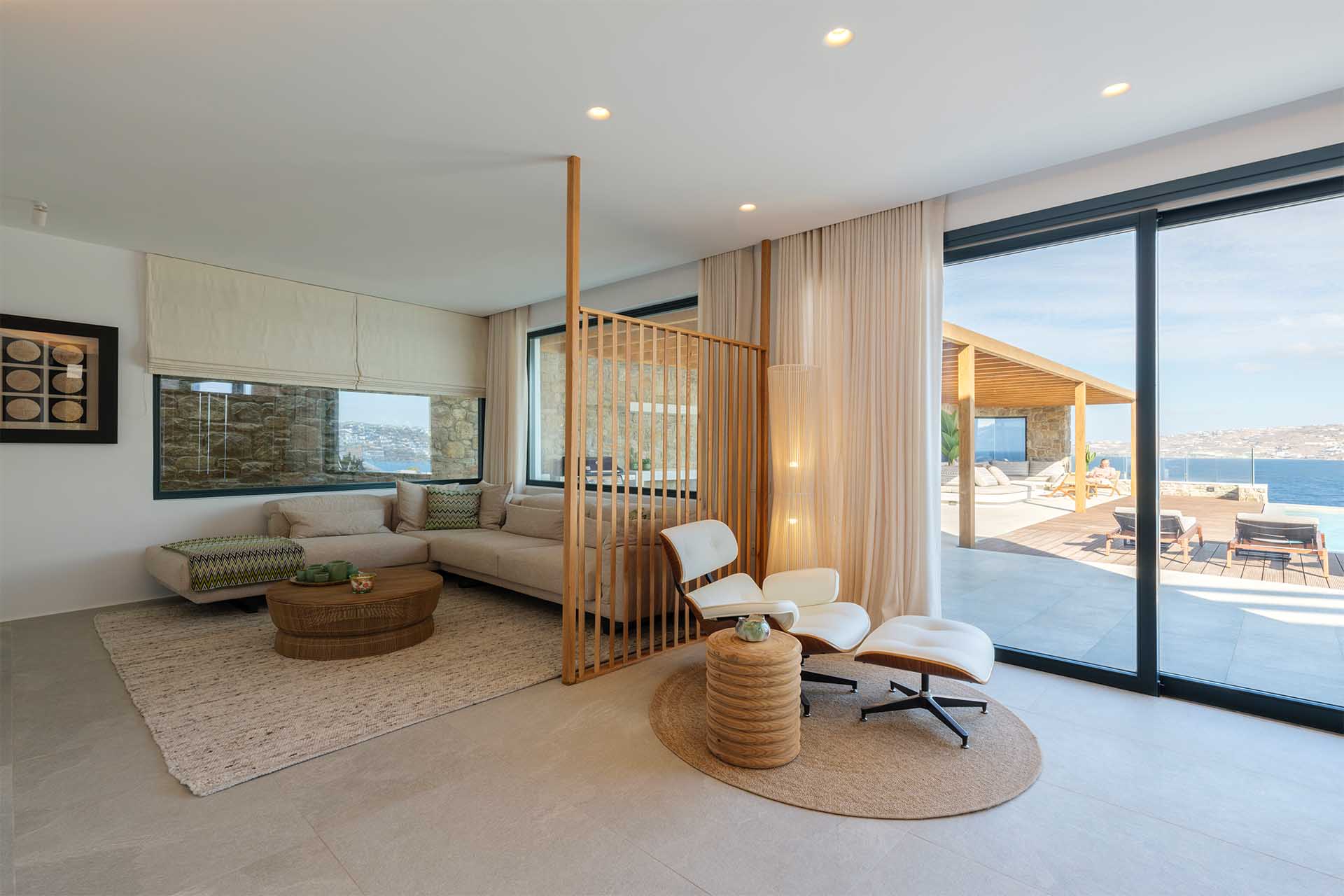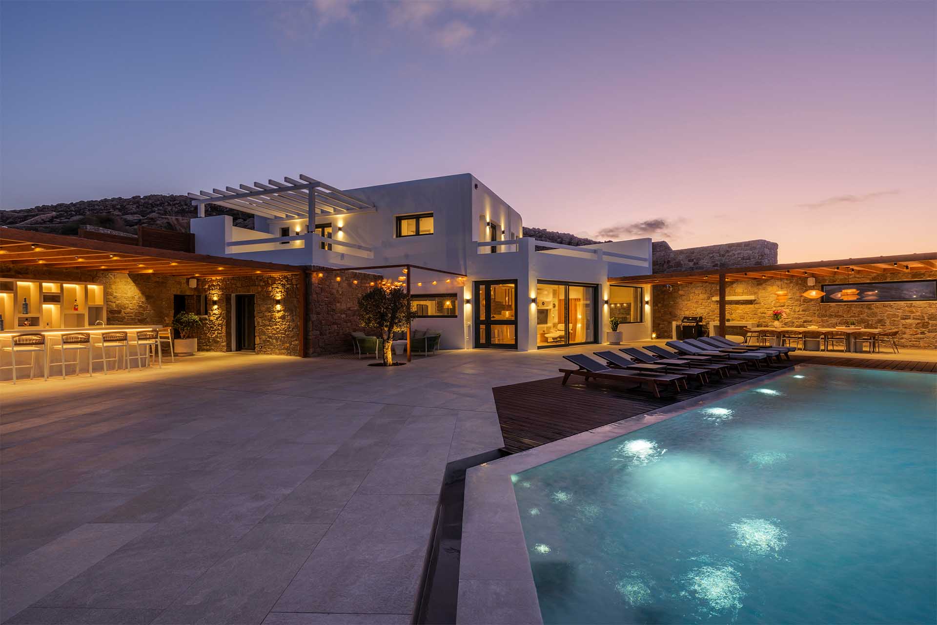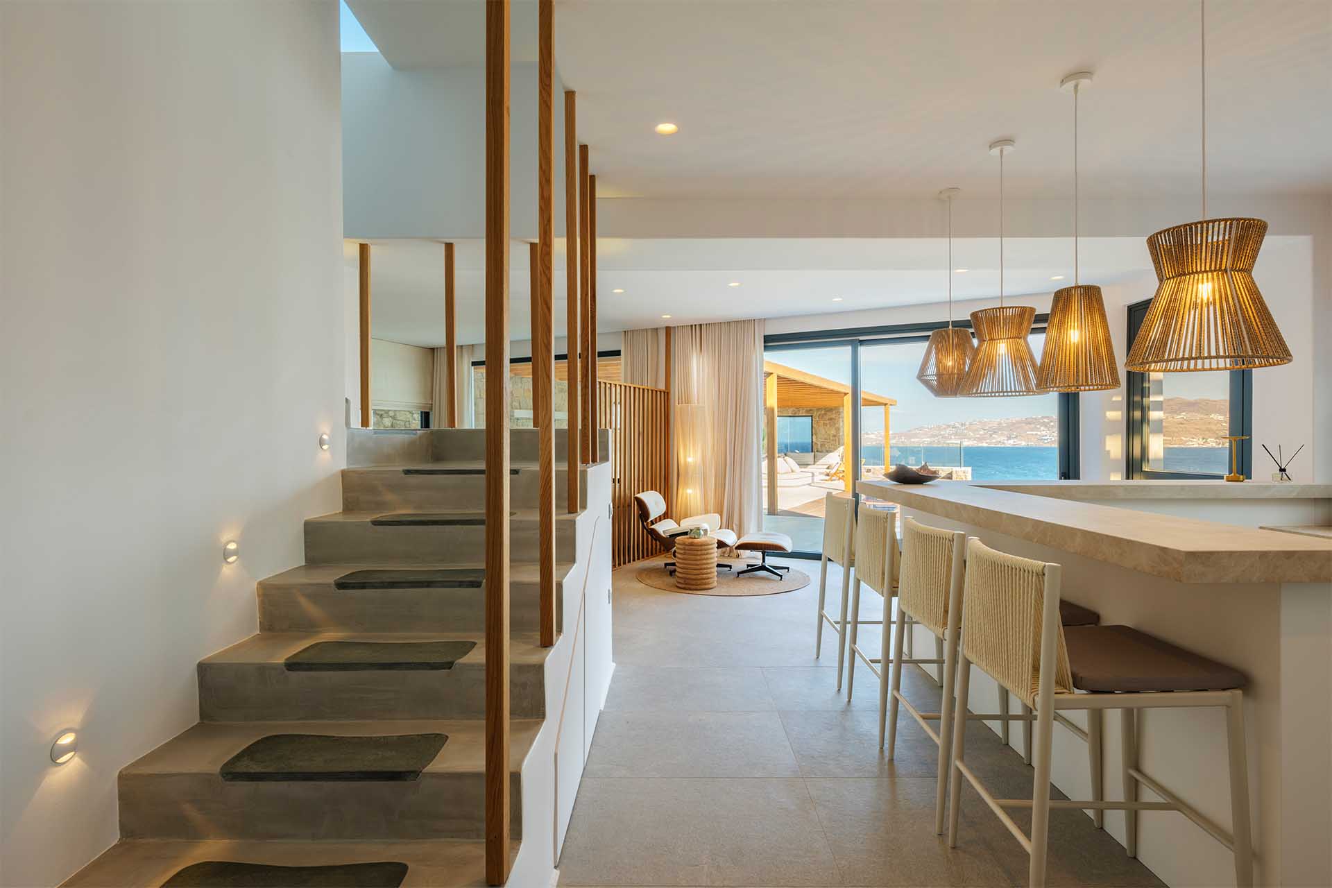 Opaline is a luxury villa in a prime Mykonos location, offering panoramic views over Kanalia and Corfos Bay. The property features six en-suite bedrooms across two levels, along with spacious terraces designed to maximize comfort and scenery.