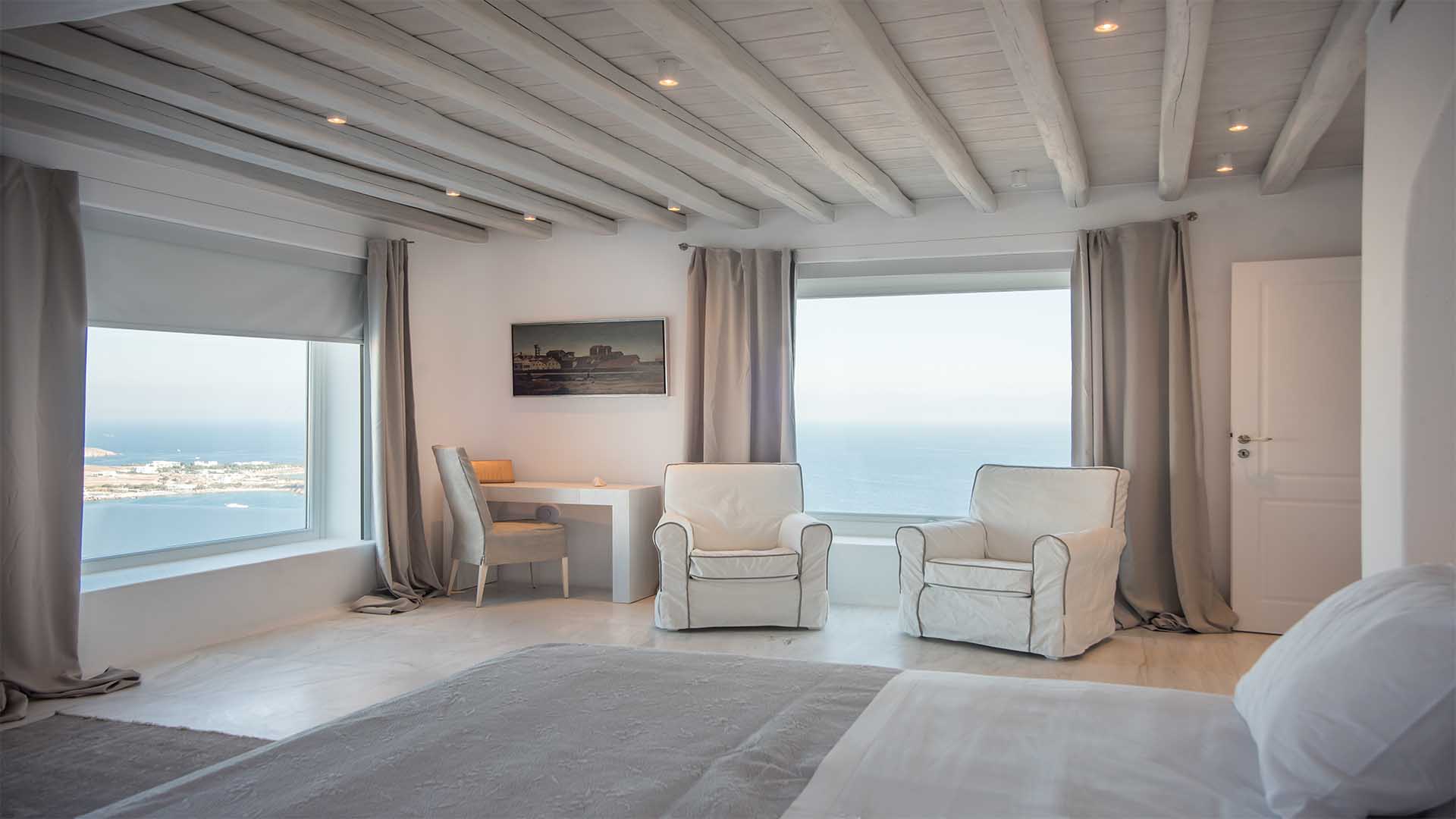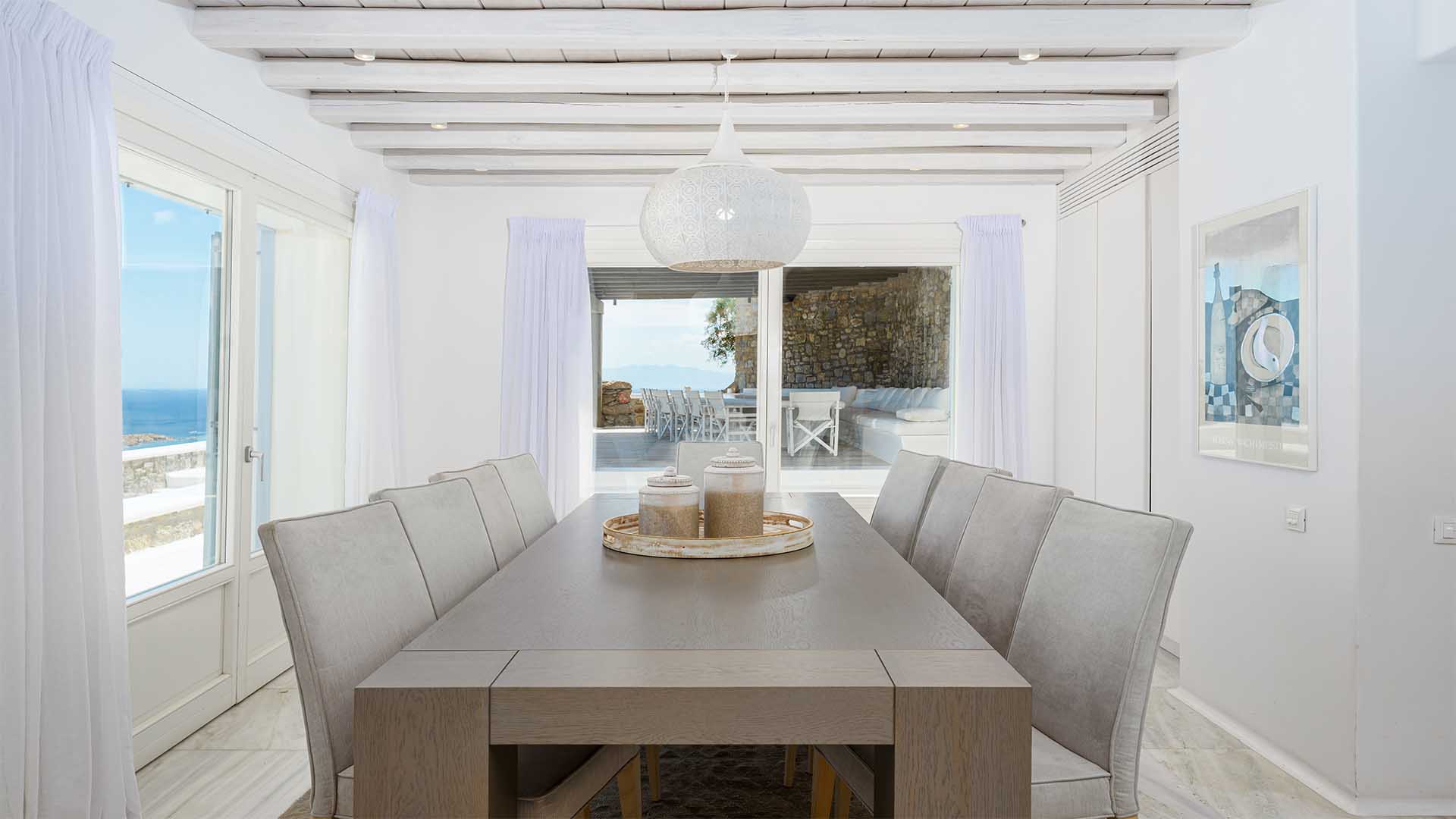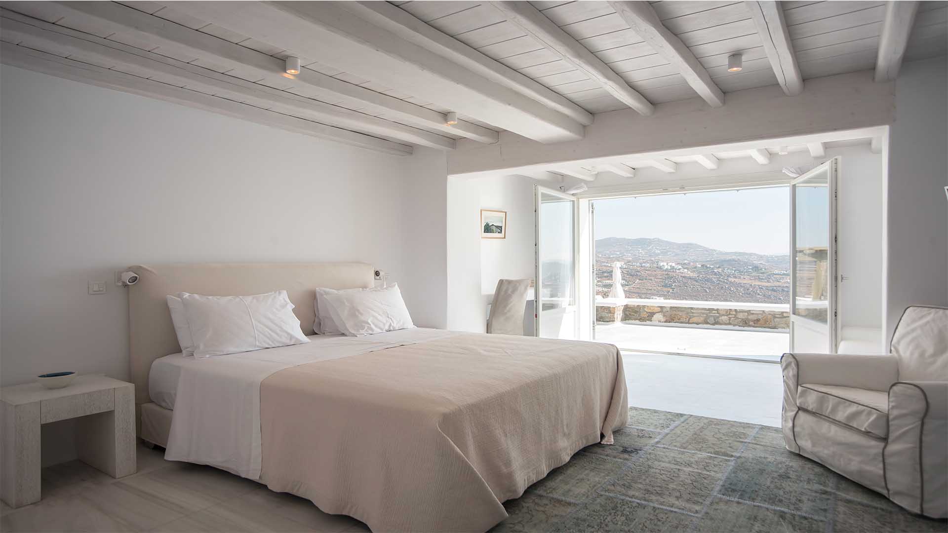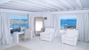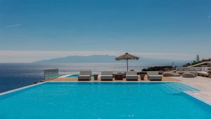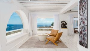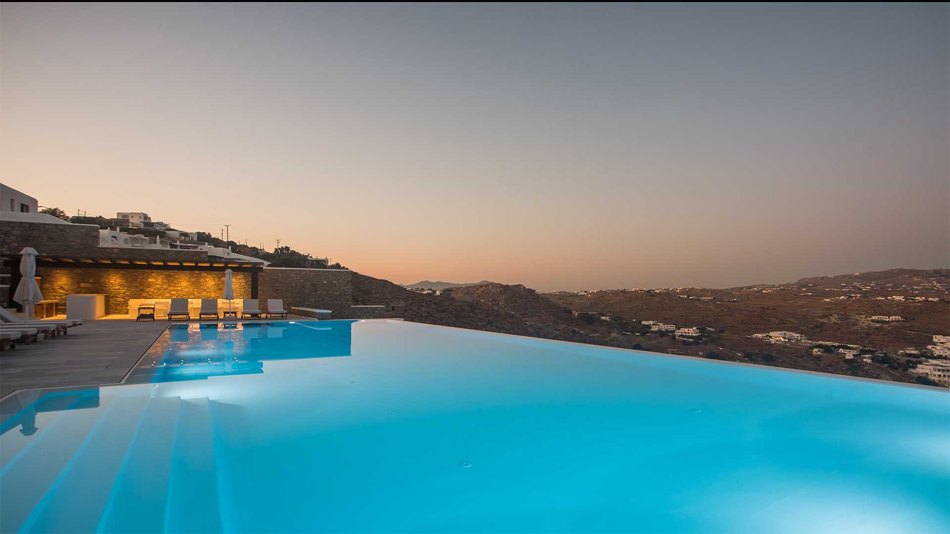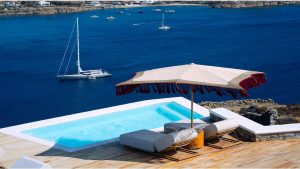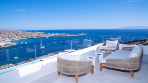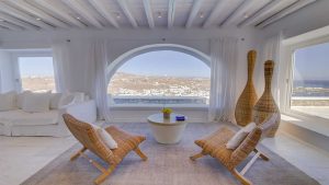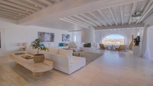 This superbly constructed property enjoys one of the most magnificent views in Mykonos, over the famous beach of Psarou, less than 3 kilometers from town center. Overhanging at the very edge of the rocky shore, the villa consists of spacious living areas and terraces with breathtaking view to the Cycladic islands and the Aegean sea. The infinity swimming pool area provides privacy and comfort to its guests where plenty of cozy corners create an unforgettable ambience. The white-washed interiors, decorated to the highest of standards, combine contemporary design with art and luxury. Villa Reina is an ultra exclusive estate, ideal for those who seek top quality time with family and friends.