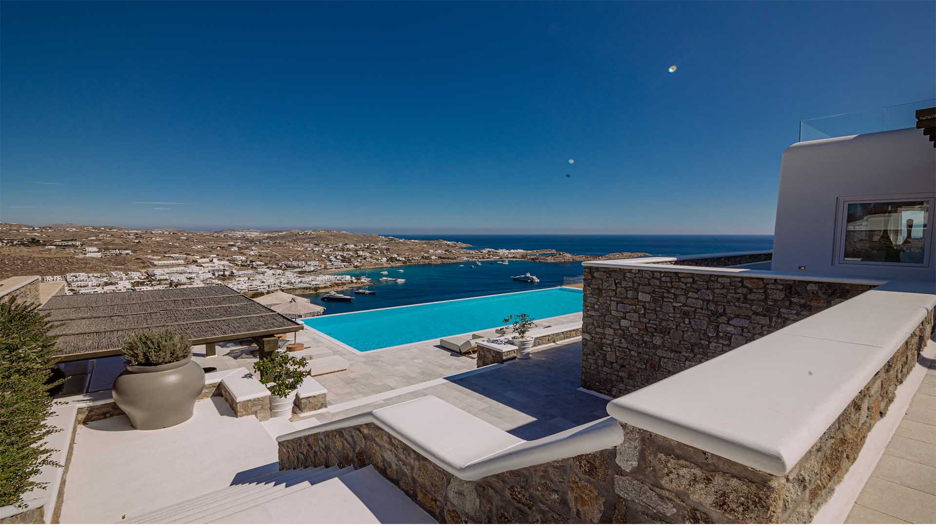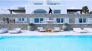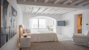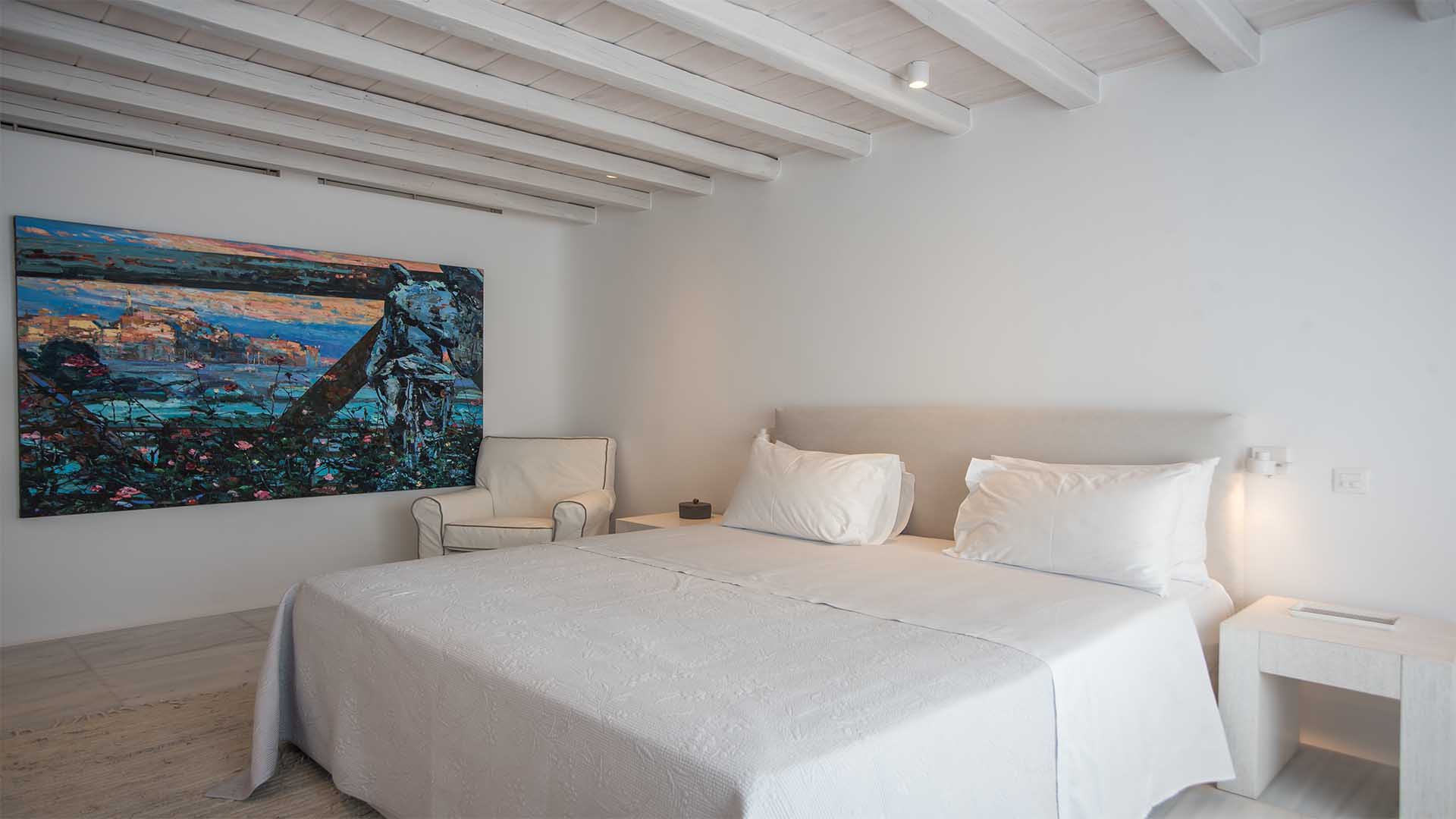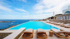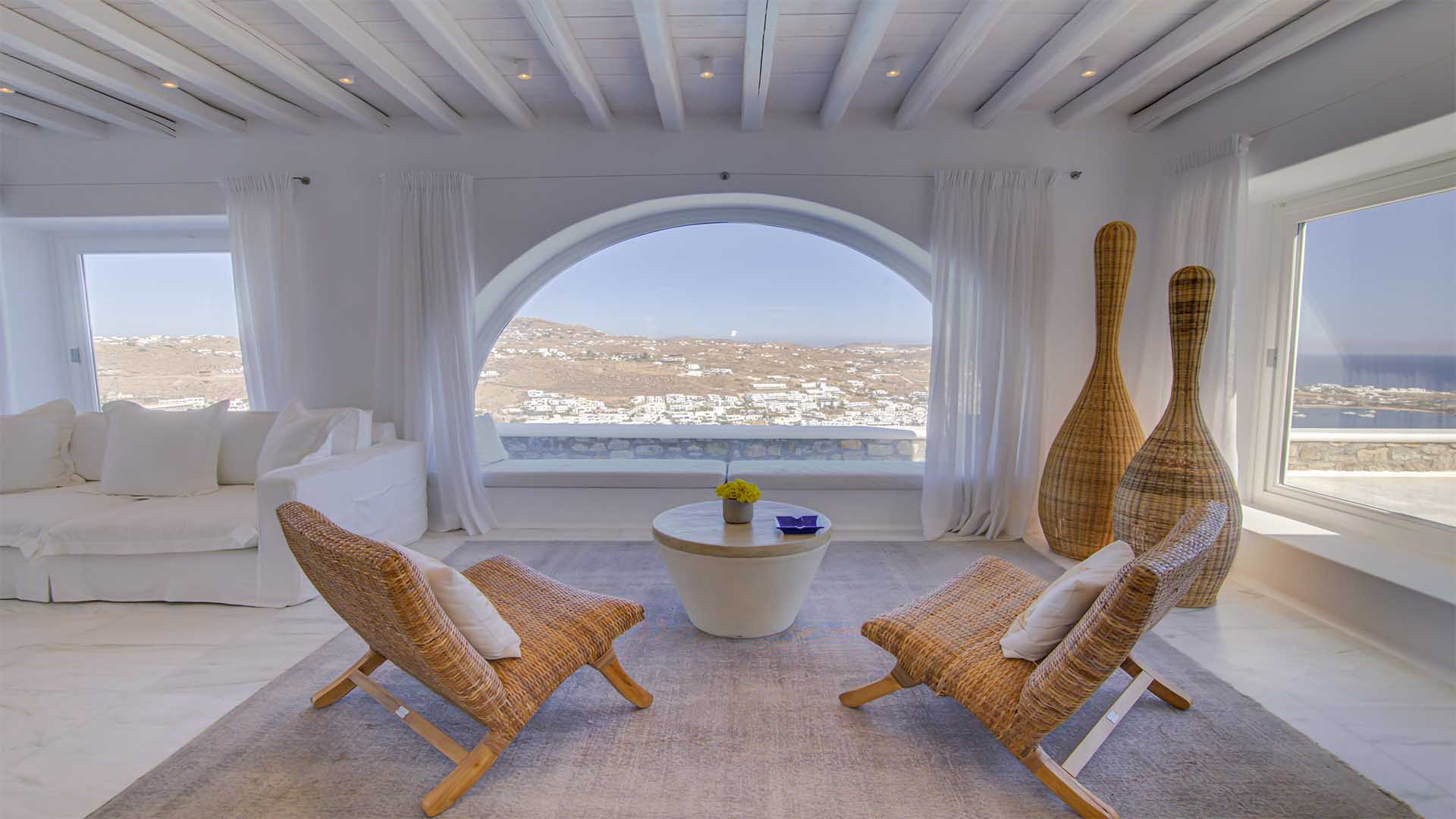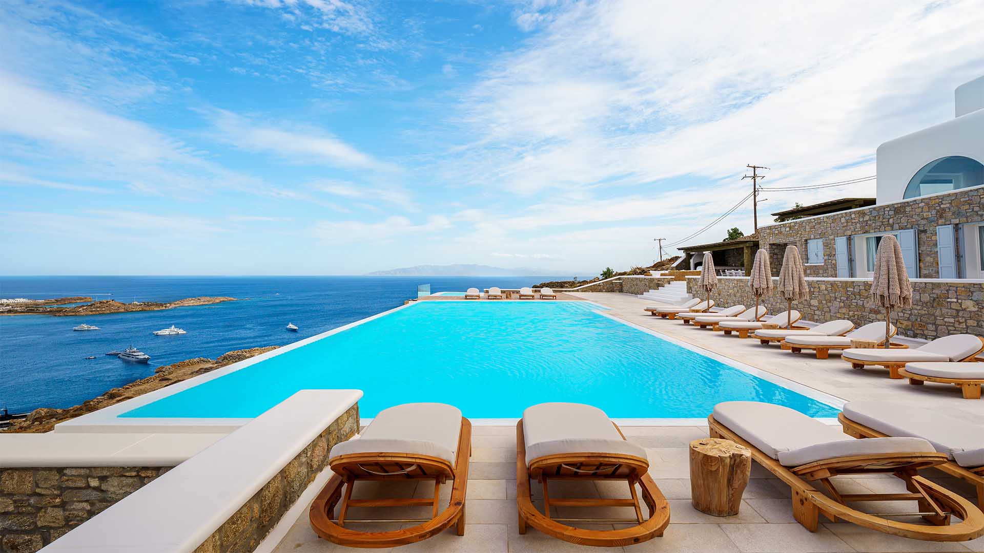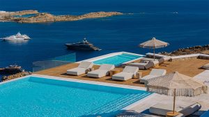 This superbly constructed property enjoys one of the most magnificent views in Mykonos, over the famous beach of Psarou, less than 3 kilometers from town center. Overhanging at the very edge of the rocky shore, the villa consists of spacious living areas and terraces with breathtaking view to the Cycladic islands and the Aegean sea. The infinity swimming pool area provides privacy and comfort to its guests where plenty of cozy corners create an unforgettable ambience. The white-washed interiors, decorated to the highest of standards, combine contemporary design with art and luxury. Villa Reina is an ultra exclusive estate, ideal for those who seek top quality time with family and friends.