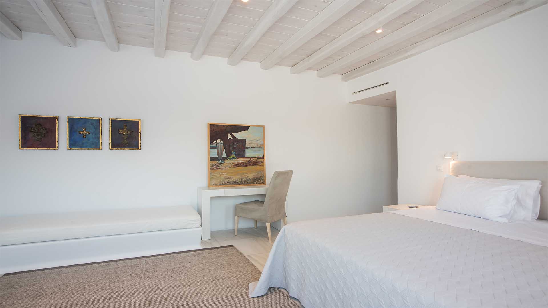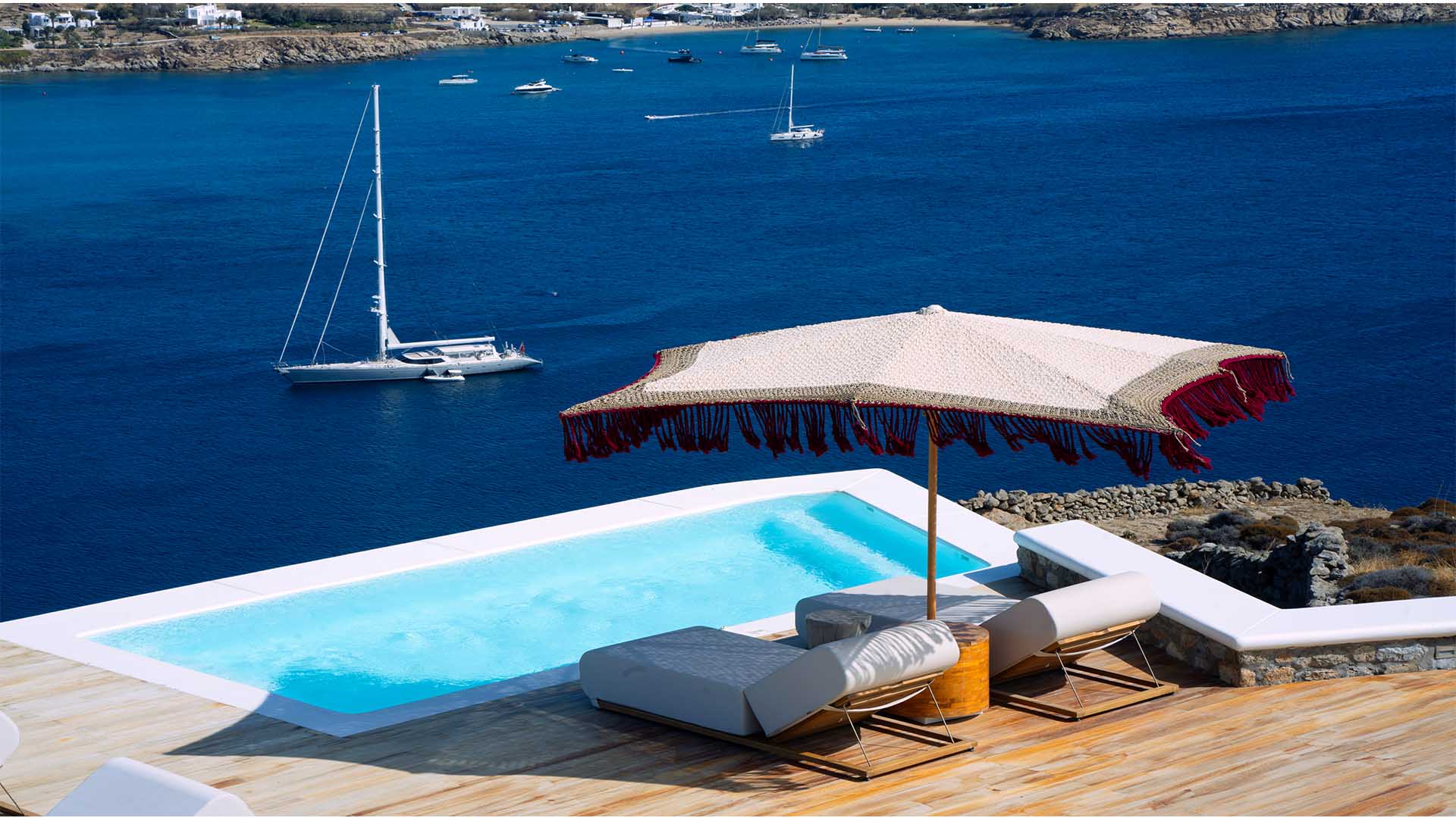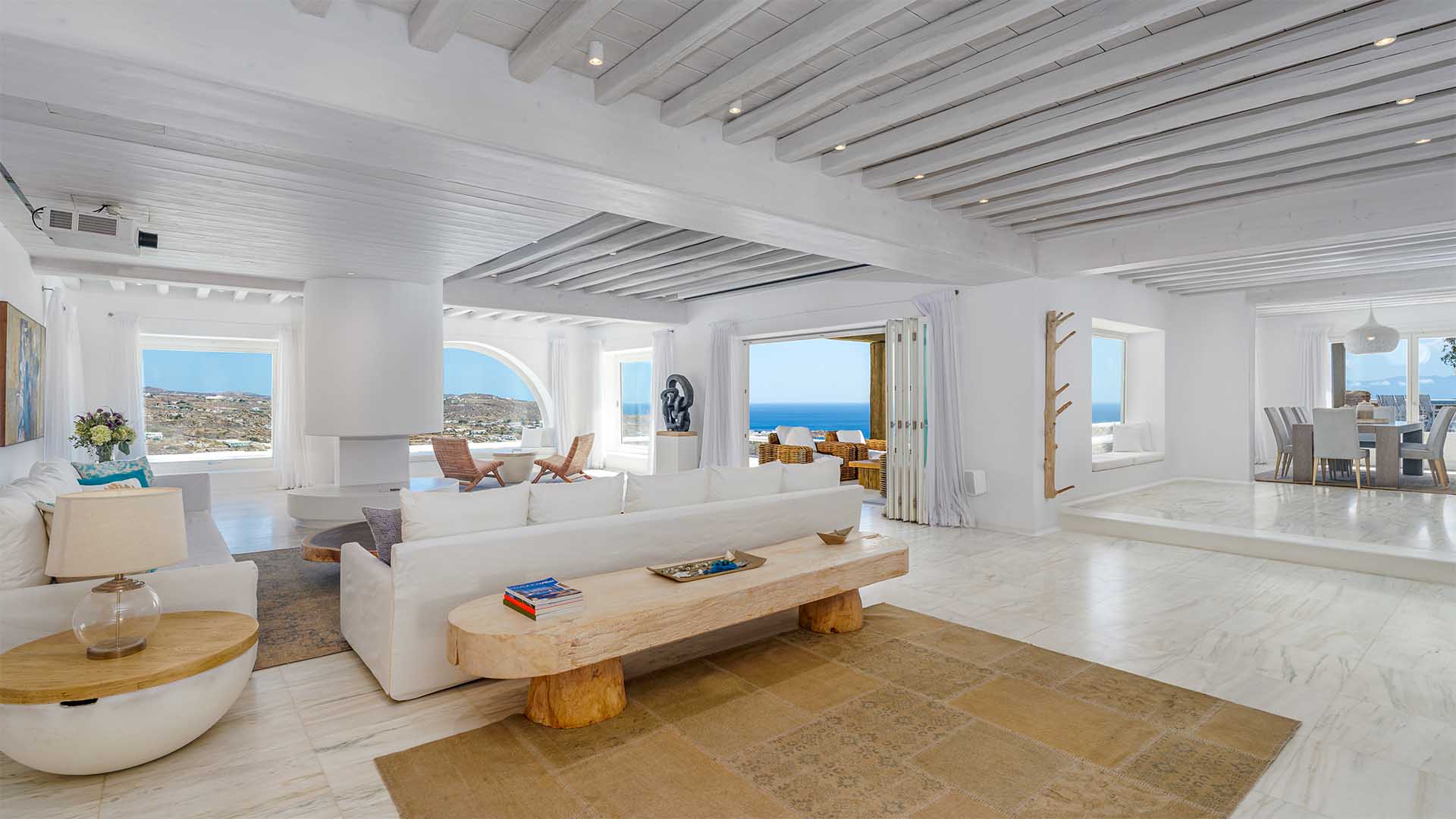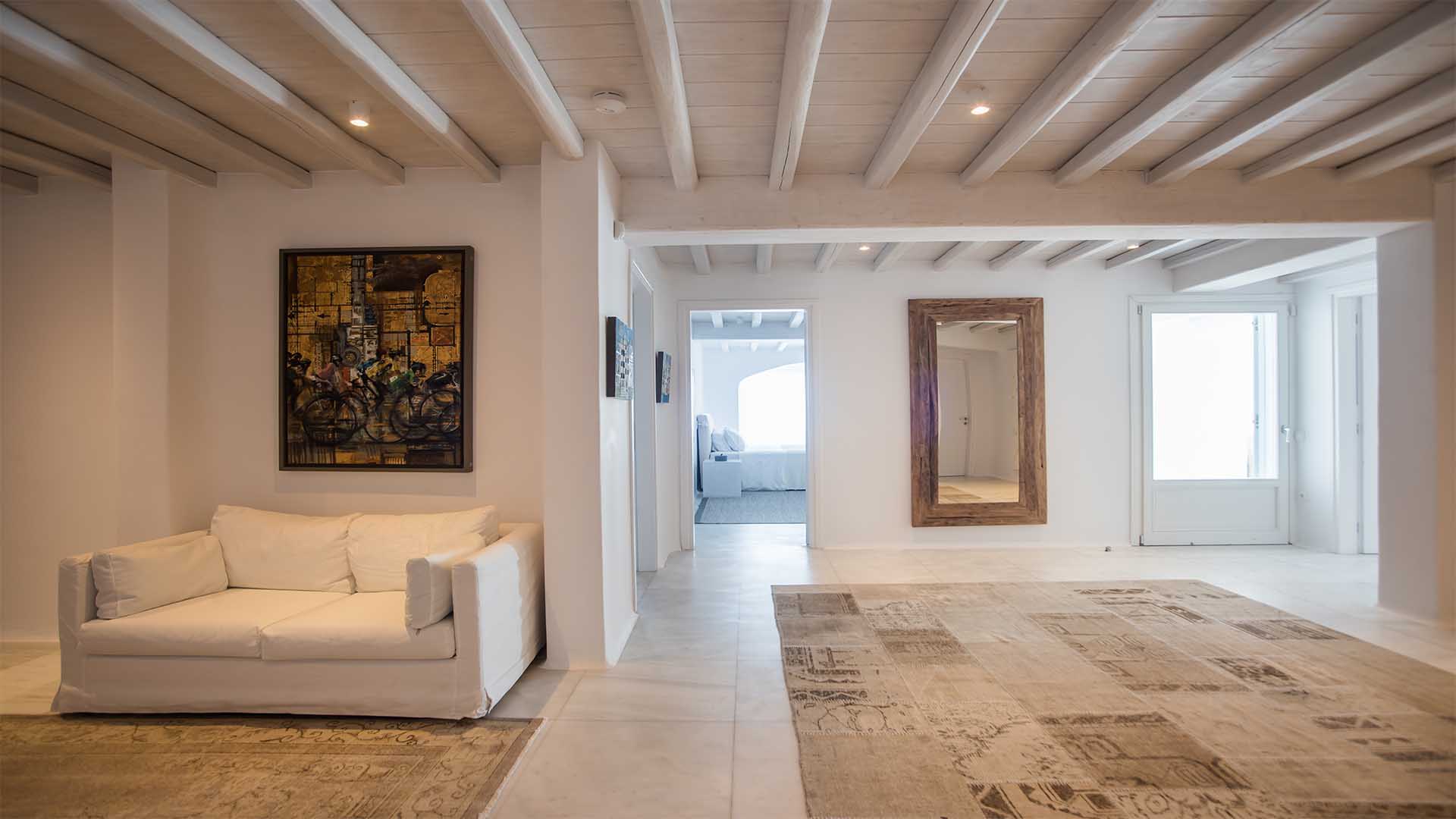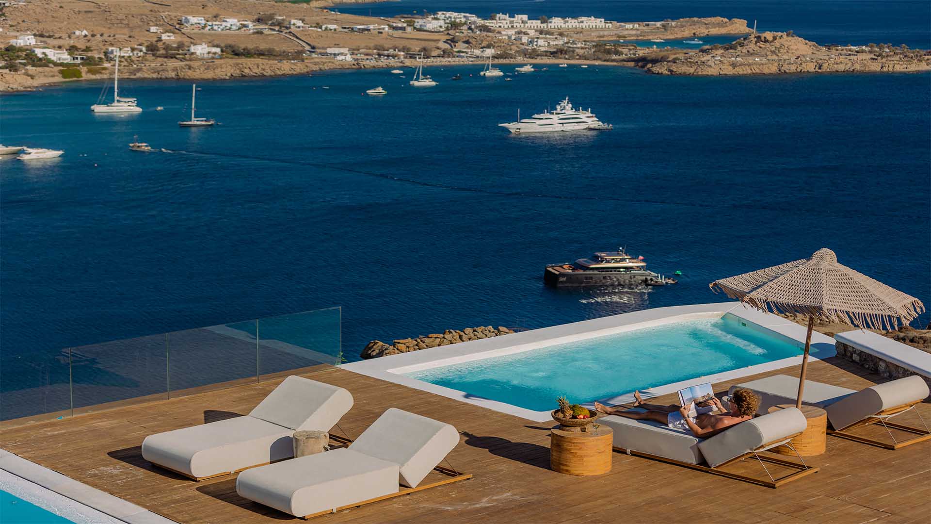 This superbly constructed property enjoys one of the most magnificent views in Mykonos, over the famous beach of Psarou, less than 3 kilometers from town center. Overhanging at the very edge of the rocky shore, the villa consists of spacious living areas and terraces with breathtaking view to the Cycladic islands and the Aegean sea. The infinity swimming pool area provides privacy and comfort to its guests where plenty of cozy corners create an unforgettable ambience. The white-washed interiors, decorated to the highest of standards, combine contemporary design with art and luxury. Villa Reina is an ultra exclusive estate, ideal for those who seek top quality time with family and friends.