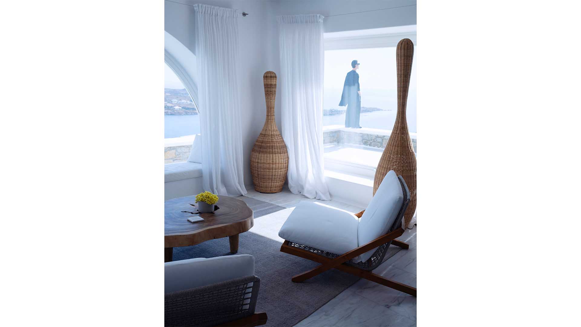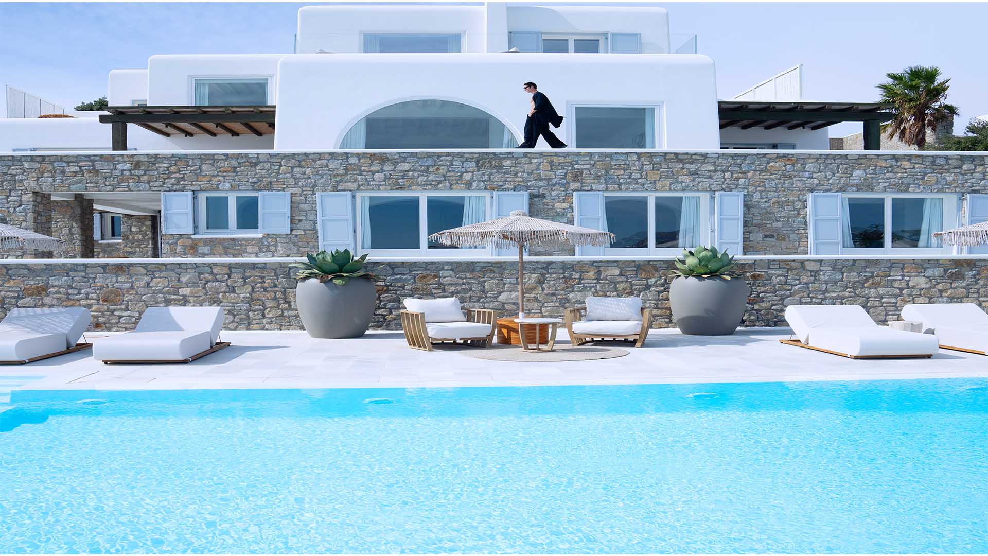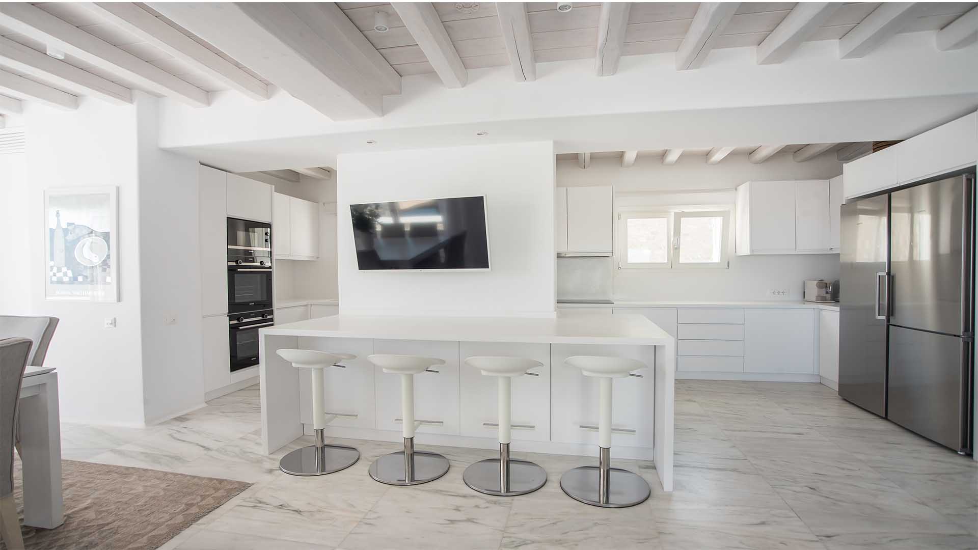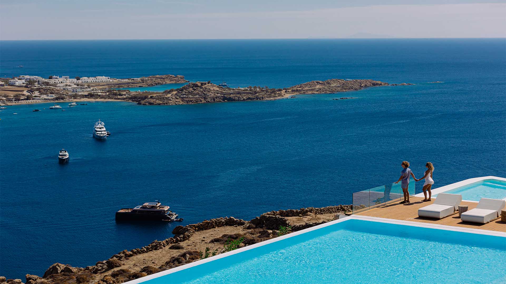 This superbly constructed property enjoys one of the most magnificent views in Mykonos, over the famous beach of Psarou, less than 3 kilometers from town center. Overhanging at the very edge of the rocky shore, the villa consists of spacious living areas and terraces with breathtaking view to the Cycladic islands and the Aegean sea. The infinity swimming pool area provides privacy and comfort to its guests where plenty of cozy corners create an unforgettable ambience. The white-washed interiors, decorated to the highest of standards, combine contemporary design with art and luxury. Villa Reina is an ultra exclusive estate, ideal for those who seek top quality time with family and friends.