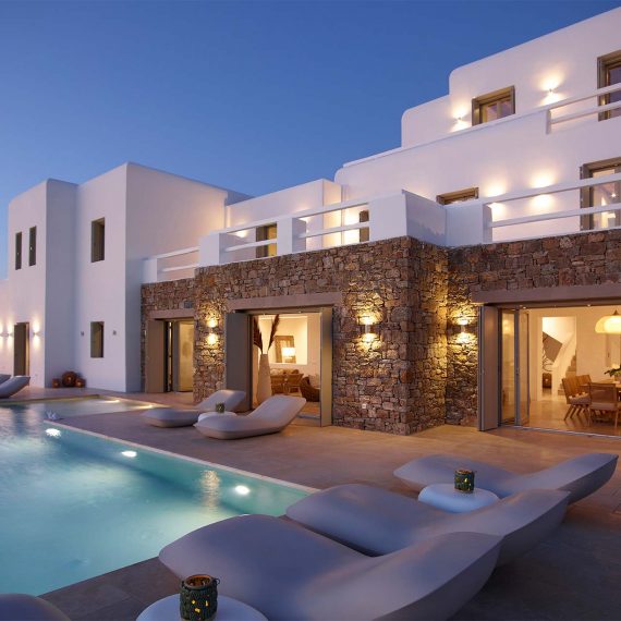 Villa Amani 14 Guests / 7 Bedrooms / Located in Ornos-Korfos / From: € 2.100 per night 17 December 2021
